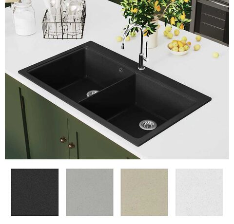 Este o chiuvetă ce economiseşte spaţiu. Cele două cuve foarte adânci oferă spațiu amplu pentru vase mari și tigăi, astfel încât aveți mereu spațiu liber la dispoziție. Livrarea include și o sită pentru îndepărtarea cu uşurinţă a deşeurilor.