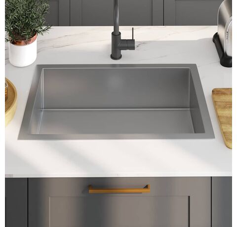 Bucurați-vă de avantajul oferit de această chiuvetă de bucătărie cu un design contemporan minimalist. Cuva cu finisaj satinat fin emană clasă și o notă sofisticată, potrivindu-se în orice decor de bucătărie!