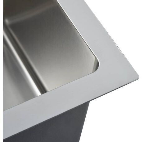 Combinând foarte bine funcționalitatea și designul, această chiuvetă este realizată manual din oțel inoxidabil de înaltă calitate, cu vopsea anticondens, rezistentă la mucegai, fără plumb și rezistentă la coroziune. Este izolată fonic cu suporturile de reducere a sunetului. În plus, vasul cu un design unic, cu un canal de scurgere în X, facilitează scurgerea rapidă, prevenind stagnarea apei pe fundul bazinului. Orificiul pentru robinet este, de asemenea, proiectat pentru a facilita instalarea.