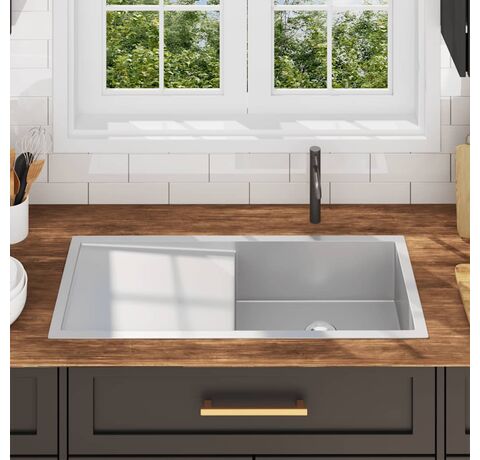 Bucurați-vă de avantajul oferit de această chiuvetă de bucătărie cu un design contemporan minimalist. Cuva cu finisaj satinat fin emană clasă și o notă sofisticată, potrivindu-se în orice decor de bucătărie!