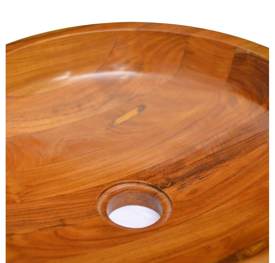 Construită din lemn de esență tare de tec, extrem de durabil, această chiuvetă a fost tratată, uscată în cuptor și apoi șlefuită fin pentru a-i da un aspect foarte neted. În plus, acest lavoar din lemn este foarte ușor de curățat.