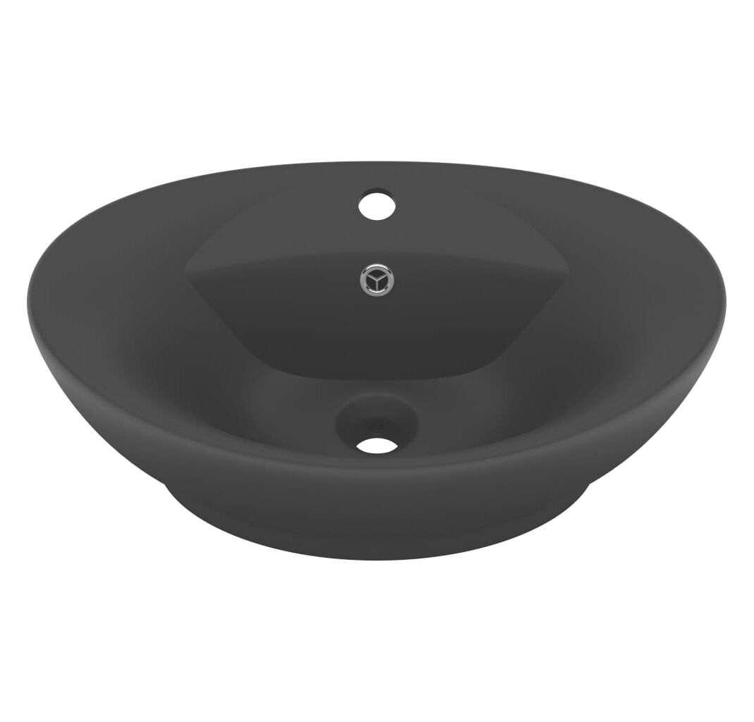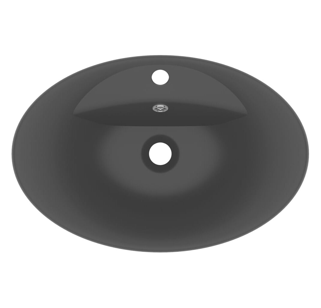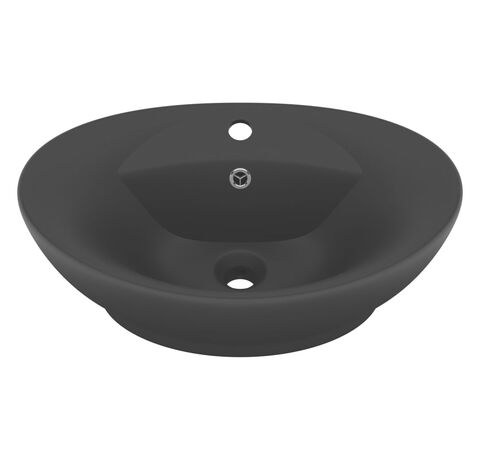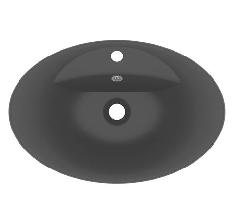 Chiuvetă lux cu preaplin, negru mat, 58,5x39 cm ceramică, oval