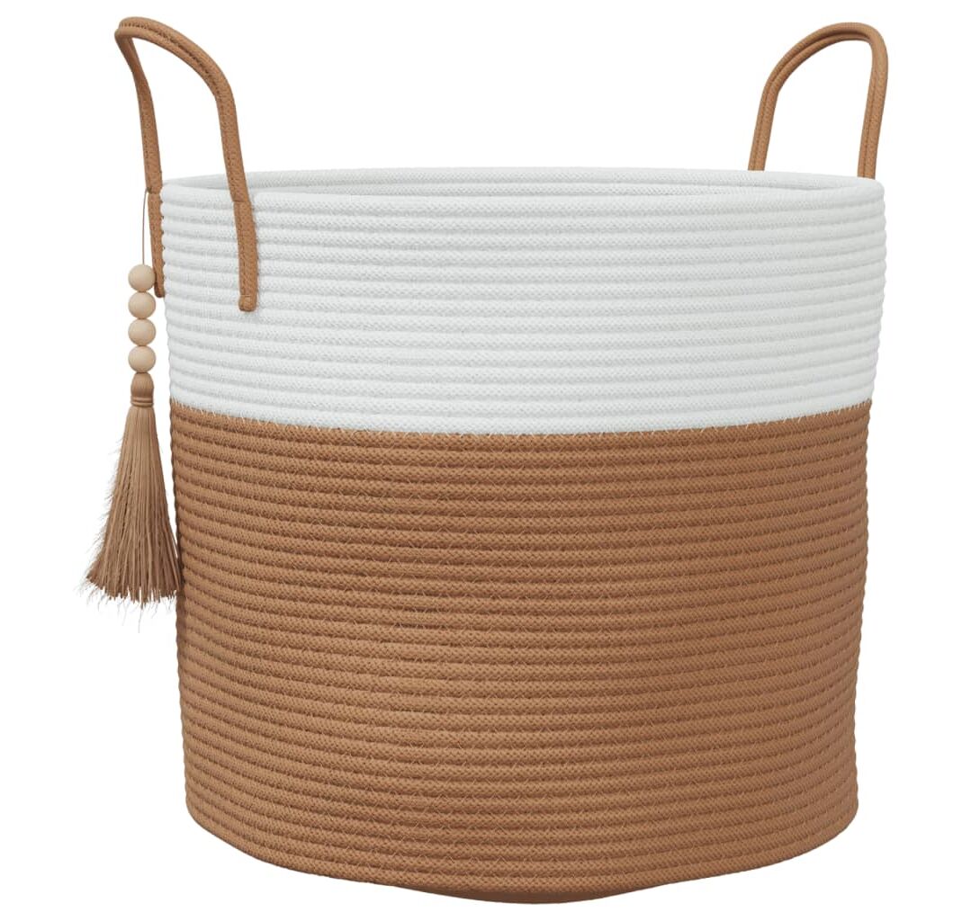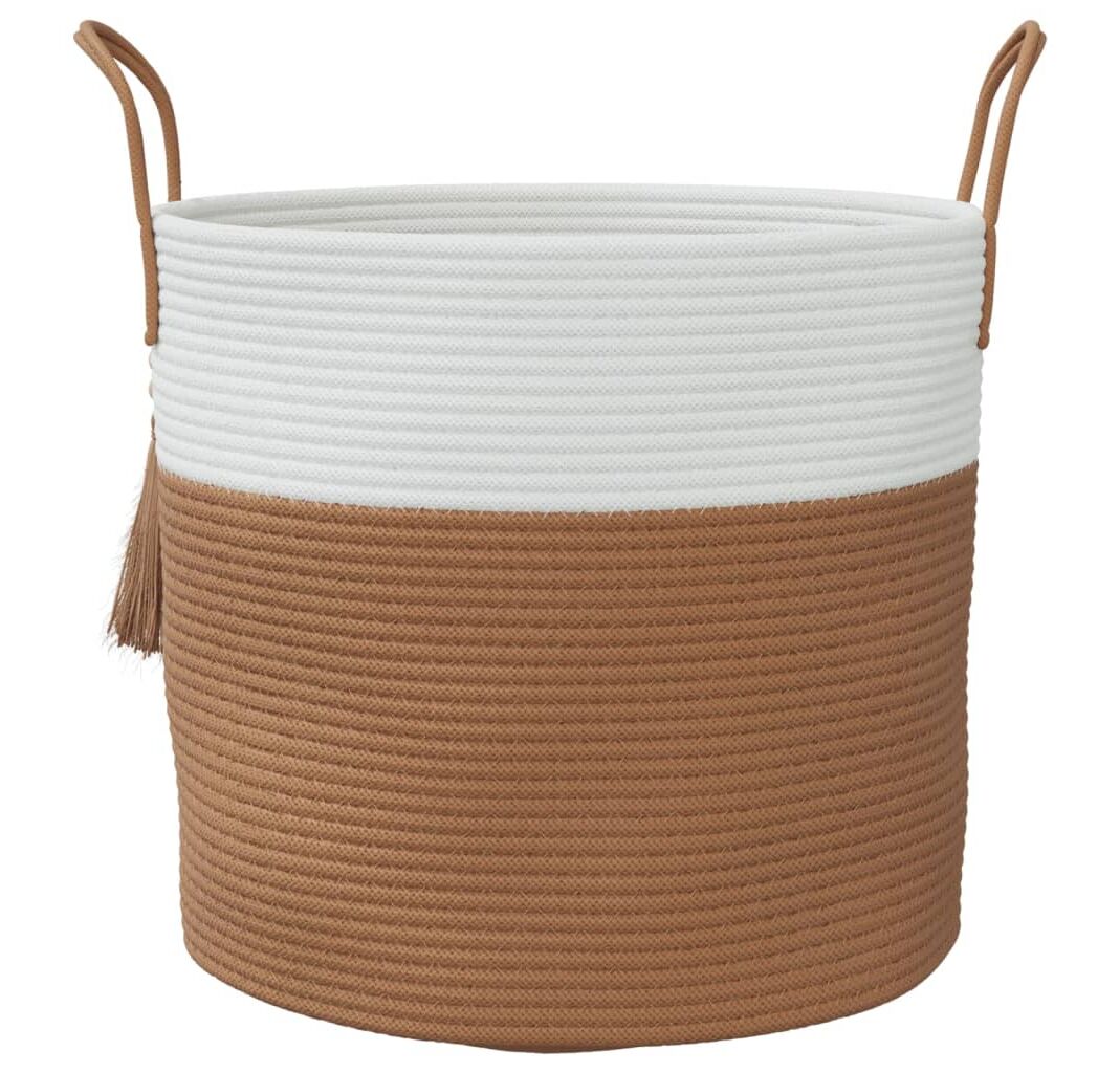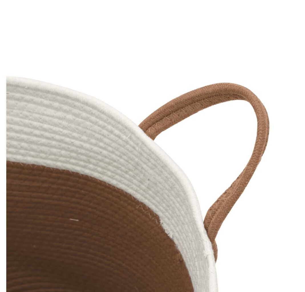 Coș de depozitare, maro și alb, Ø40x35 cm, bumbac