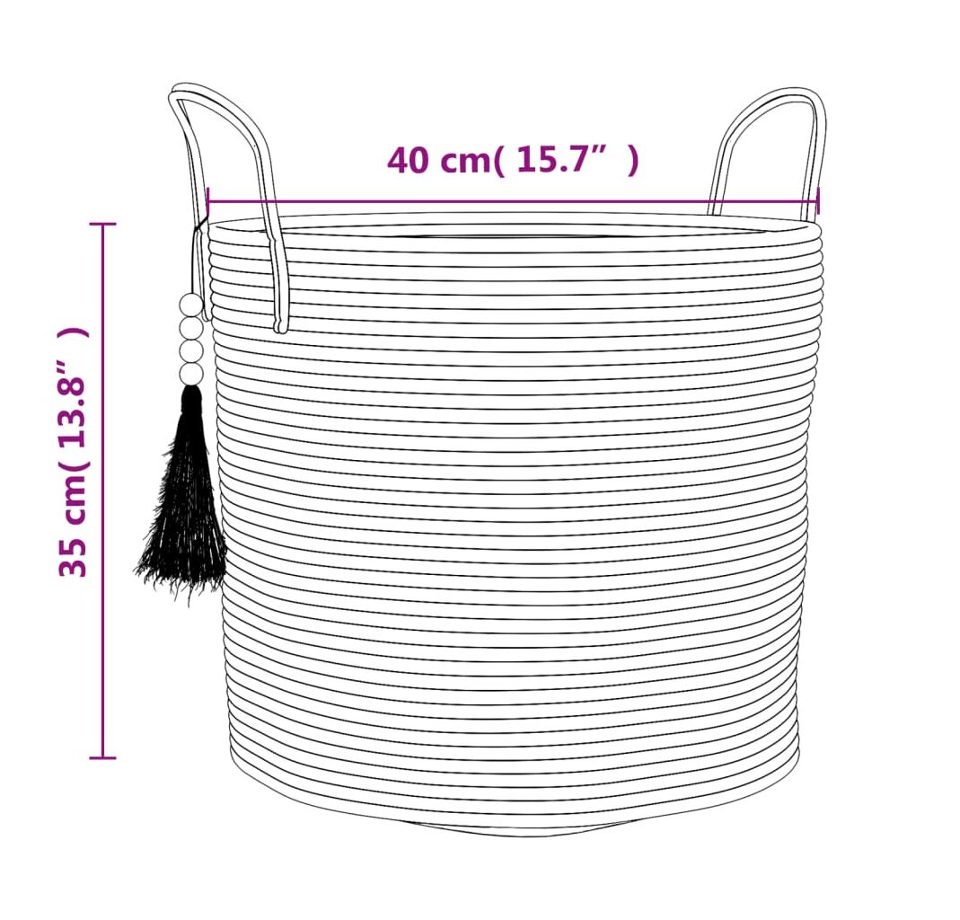 • Material durabil: Acest coș țesut este fabricat din frânghii de bumbac țesute, cunoscute pentru respirabilitate, moliciune și durabilitate excepțională.