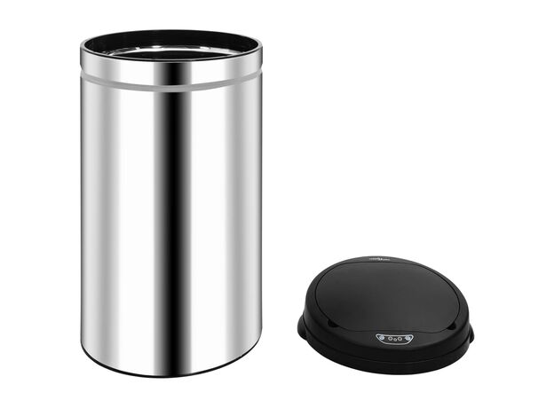 Această pubelă este fabricată dintr-o carcasă de oțel inoxidabil și un capac din ABS rezistent, fiind durabilă și ușor de curățat. Include un inel pentru fixarea sacului, iar capacul poate fi îndepărtat cu ușurință. De asemenea, puteți opri senzorul pentru a deschide și închide capacul manual.