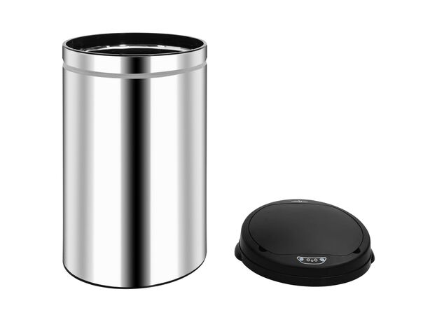 Această pubelă este fabricată dintr-o carcasă de oțel inoxidabil și un capac din ABS rezistent, fiind durabilă și ușor de curățat. Include un inel pentru fixarea sacului, iar capacul poate fi îndepărtat cu ușurință. De asemenea, puteți opri senzorul pentru a deschide și închide capacul manual.