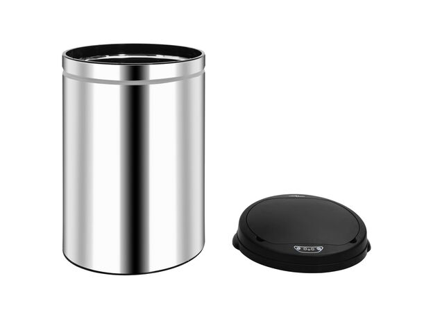 Această pubelă este fabricată dintr-o carcasă de oțel inoxidabil și un capac din ABS rezistent, fiind durabilă și ușor de curățat. Include un inel pentru fixarea sacului, iar capacul poate fi îndepărtat cu ușurință. De asemenea, puteți opri senzorul pentru a deschide și închide capacul manual.