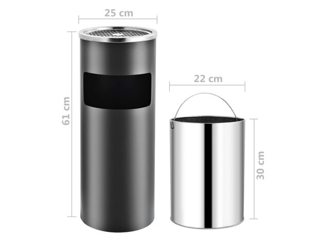 Coș de gunoi cu scrumieră, pentru hotel, gri, oțel, 30 L