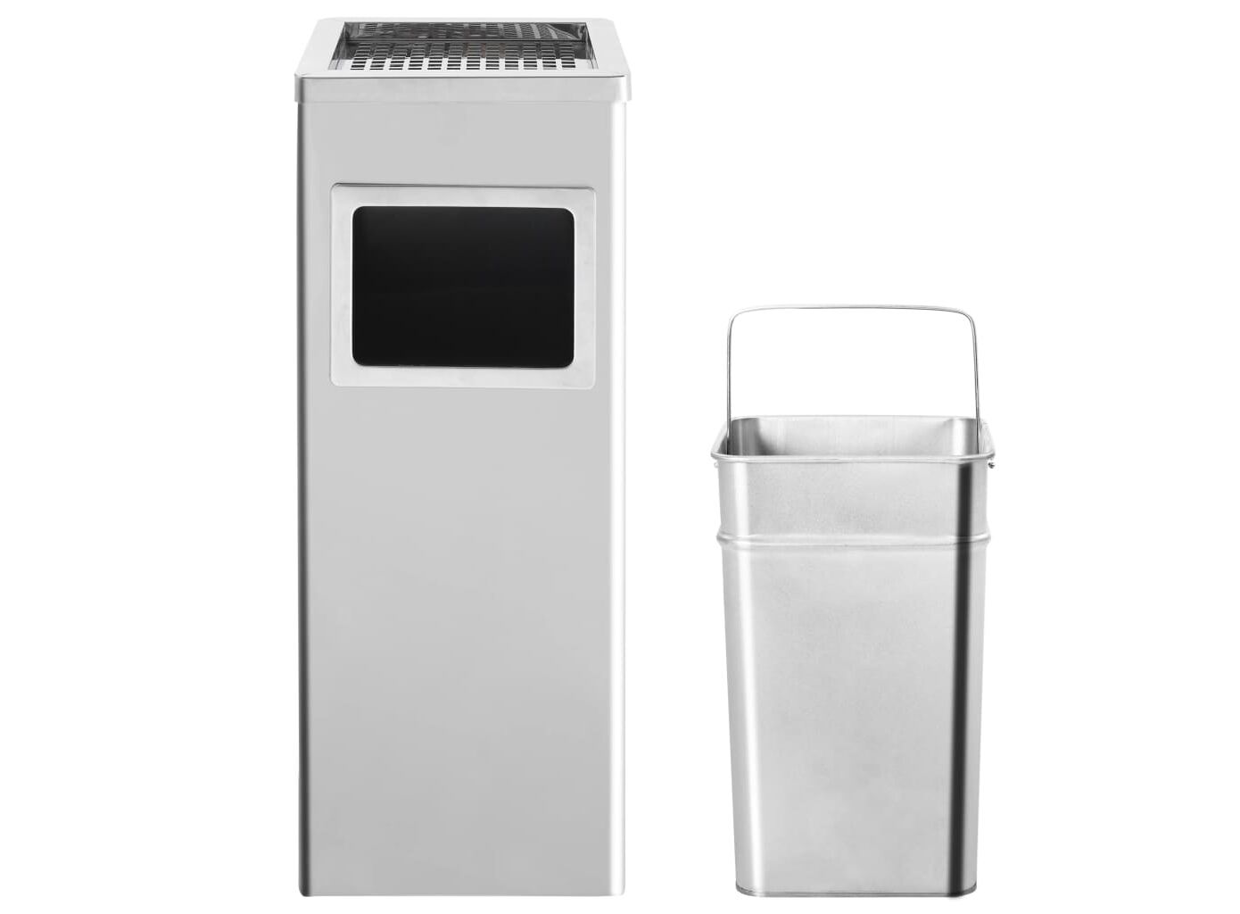 Caracterizat prin eleganța oțelului și un design cu scrumieră, coșul de gunoi cu scrumieră, de înaltă calitate, nu numai că are un design sofisticat, ci se și remarcă prin funcționalitatea sa. Coșul nostru are un recipient de reciclare de capacitate mare și include, de asemenea, o scrumieră în partea de sus, și poate fi folosit atât în interior cât și în exterior, în hoteluri, restaurante, în fața casei, birouri, precum și în alte locuri publice.