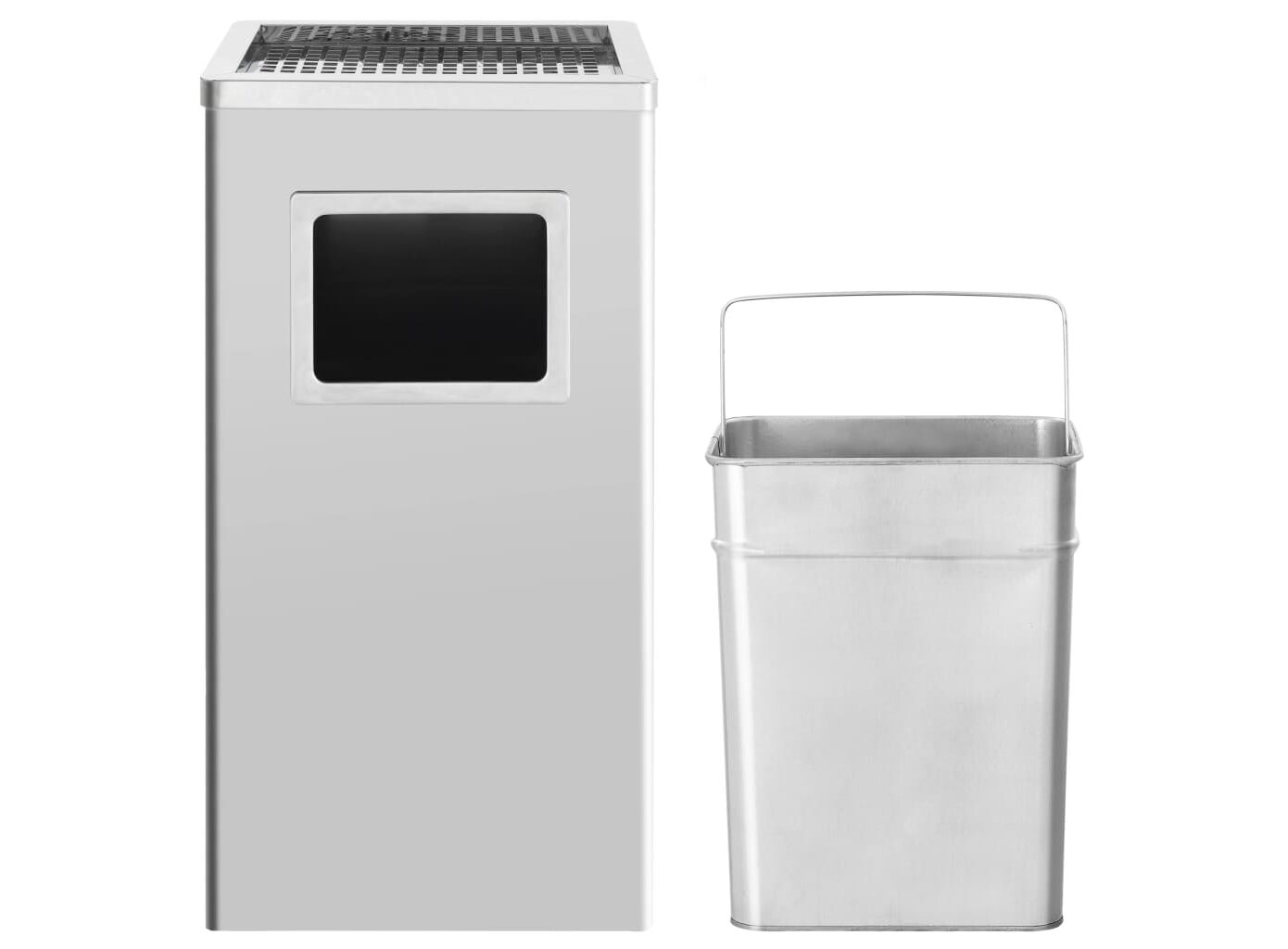 Caracterizat prin eleganța oțelului și un design cu scrumieră, coșul de gunoi cu scrumieră, de înaltă calitate, nu numai că are un design sofisticat, ci se și remarcă prin funcționalitatea sa. Coșul nostru are un recipient de reciclare de capacitate mare și include, de asemenea, o scrumieră în partea de sus, și poate fi folosit atât în interior cât și în exterior, în hoteluri, restaurante, în fața casei, birouri, precum și în alte locuri publice.