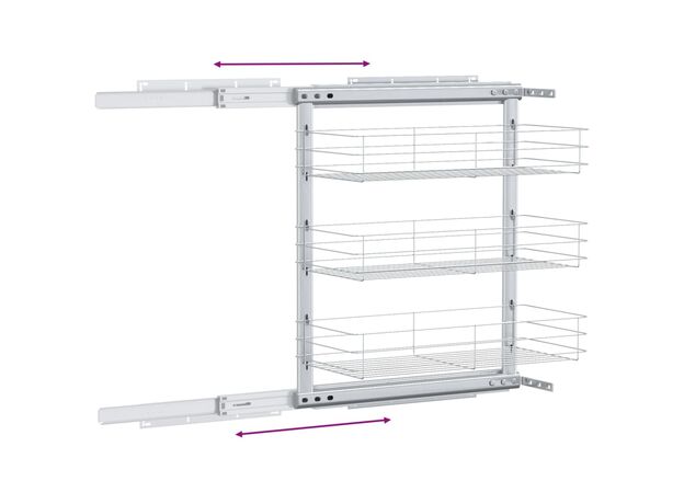 Cantitatea minima pentru "Coș sârmă bucătărie retractabil 3 niveluri argintiu 47x25x56 cm" este 1.