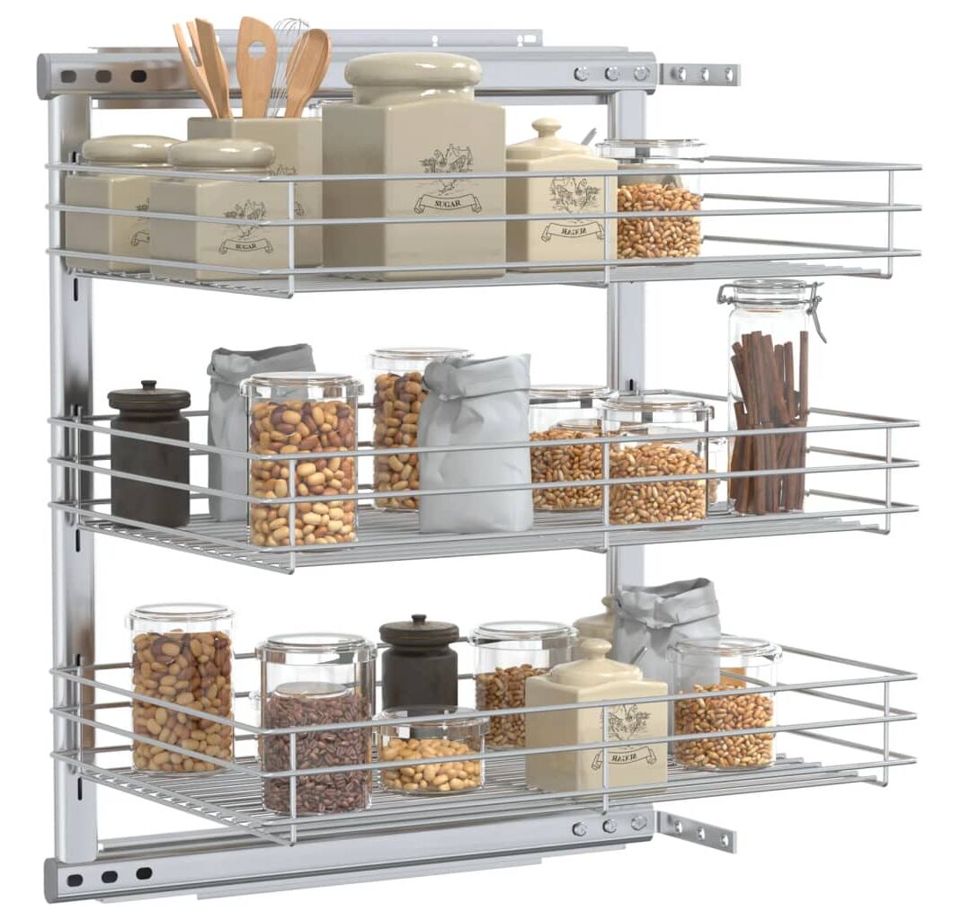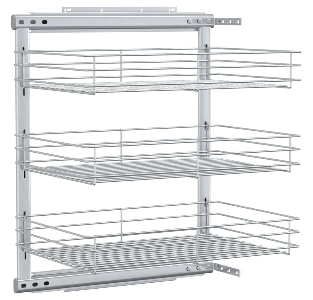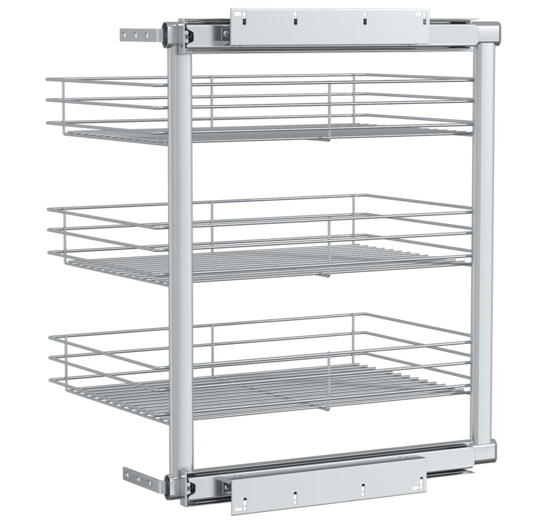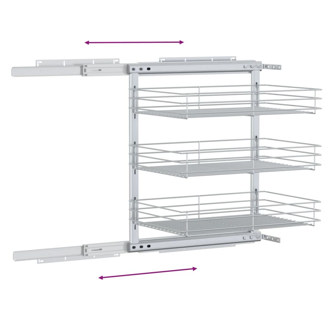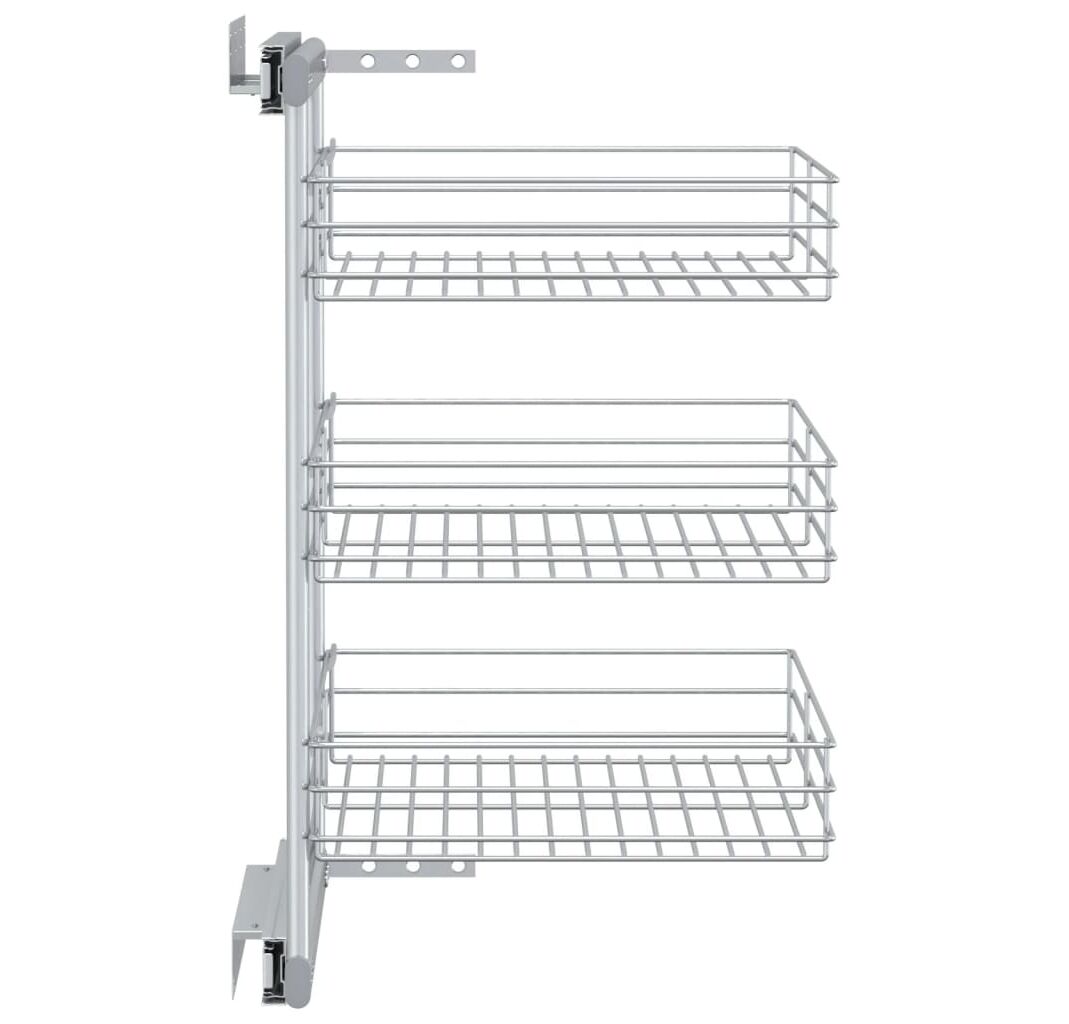 Acest coș de sârmă retractabil este ușor de montat în dulapul dvs. de bucătărie cu accesoriile de montaj incluse. Prevăzut cu 3 rafturi, acest coș de sârmă este o soluție simplă, dar practică, pentru a vă optimiza spațiul de depozitare al dulapului dvs. de bucătărie.
