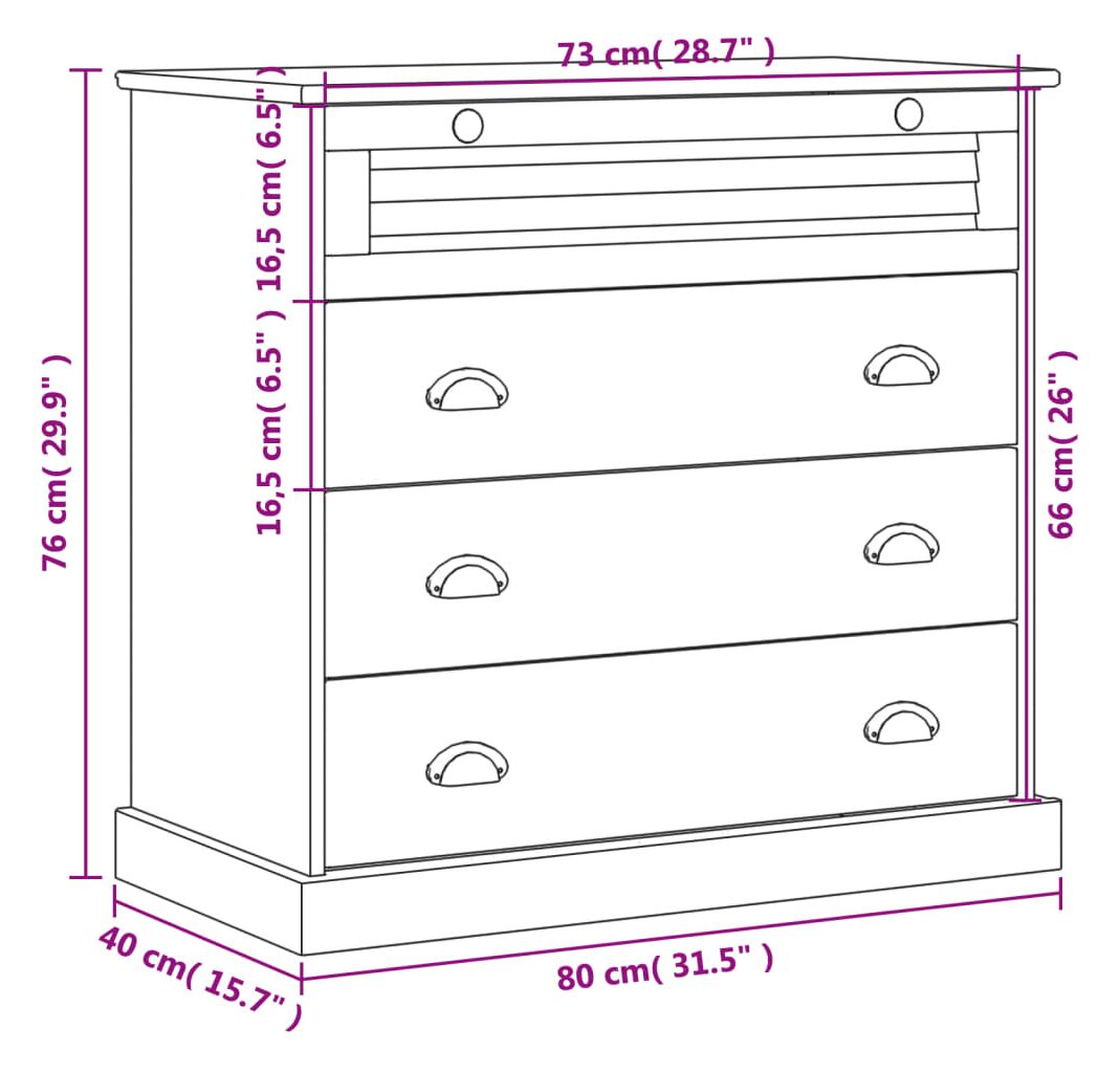 Cantitatea minima pentru "Comodă cu sertare VIGO, alb, 80x40x76 cm, lemn masiv de pin" este 1.