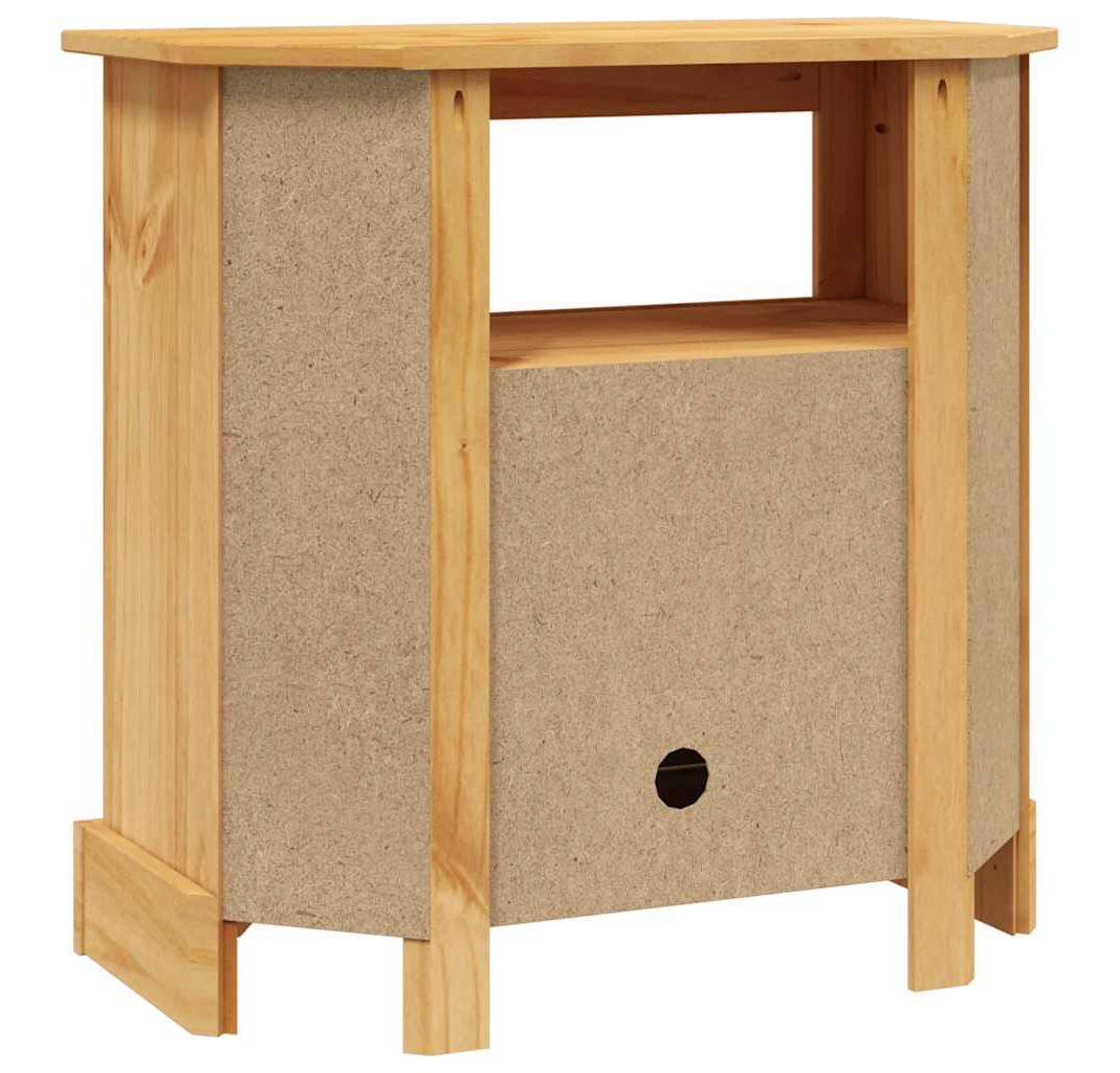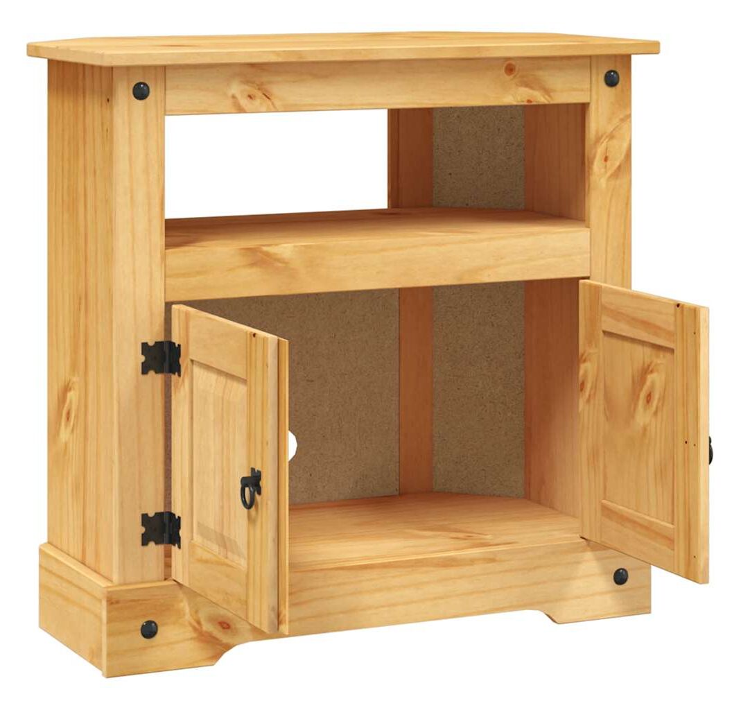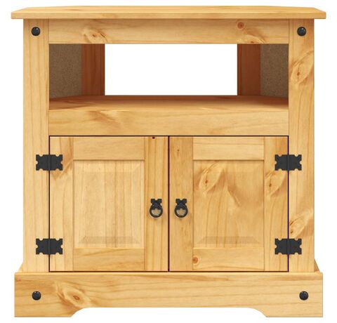 Dulapul rezistent și robust este fabricat din lemn masiv de pin. Are un blat rezistent, pe care puteți amplasa televizorul sau o veioză, alimente și băuturi sau obiecte decorative, precum rame de fotografii, coșuri de fructe sau vase. Este prevăzut cu un dulap cu uși și un compartiment deschis, ce oferă un spațiu amplu pentru depozitarea și aranjarea cărților, revistelor și a altor lucruri utile sau pentru păstrarea DVD player-ului, a consolei de jocuri sau a dispozitivului de streaming. Spatele este lăsat deschis pentru cablurile de legătură.