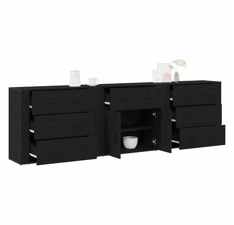 Setul ăsta de trei comode are un finisaj elegant din stejar negru, oferind mult spațiu de stocare și îmbunătățind aspectul camerei tale cu un look modern.- Culoare: Negru