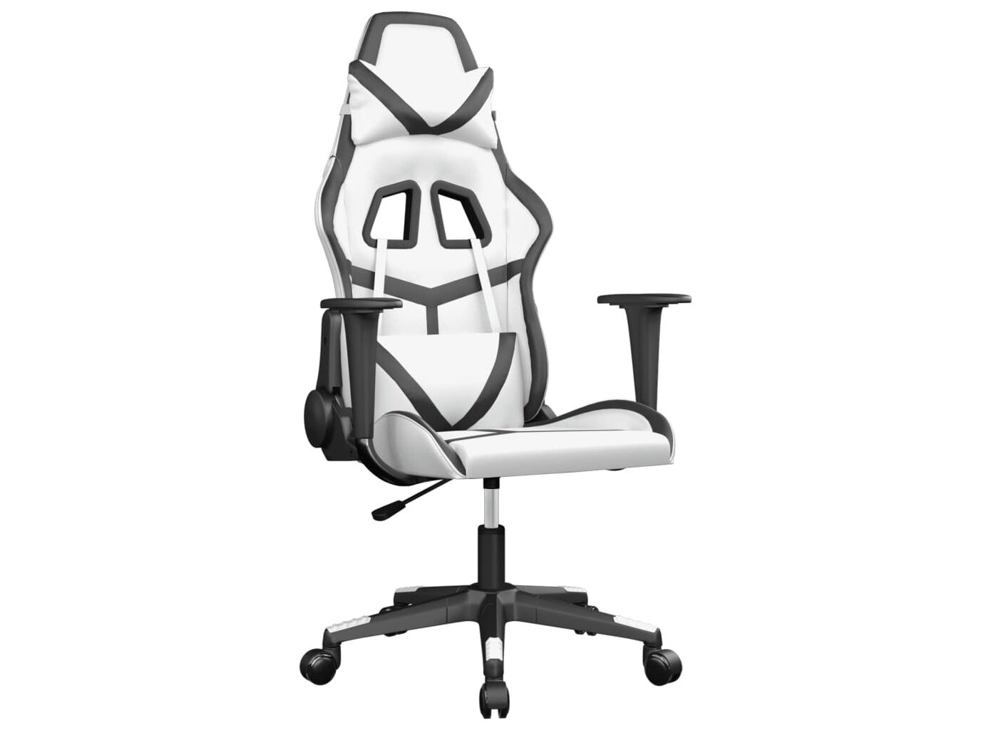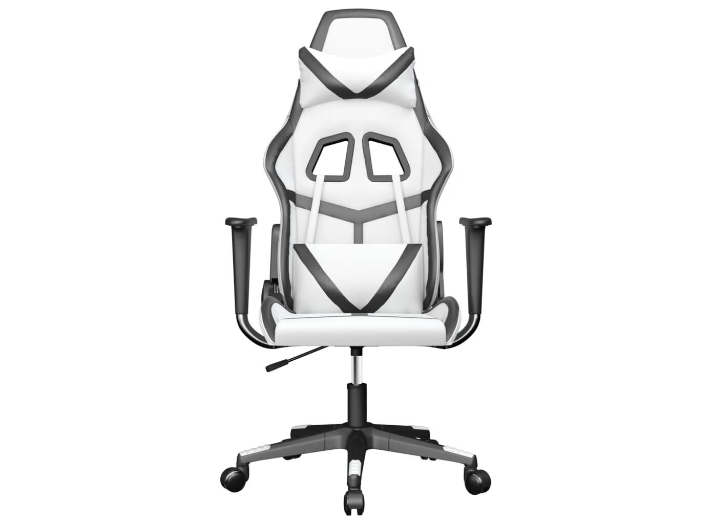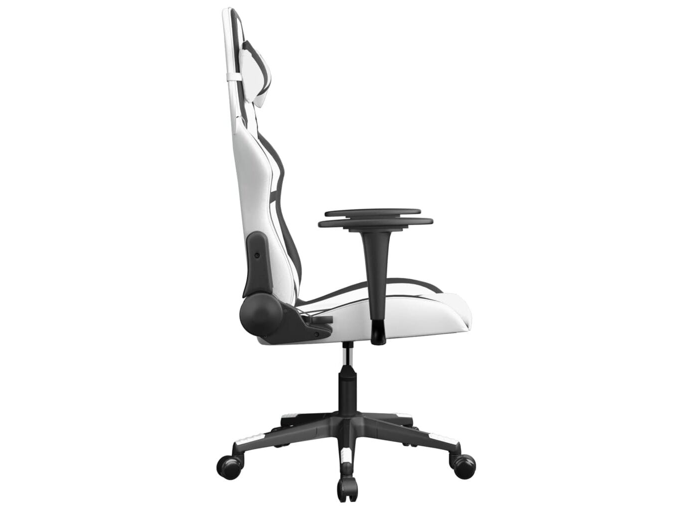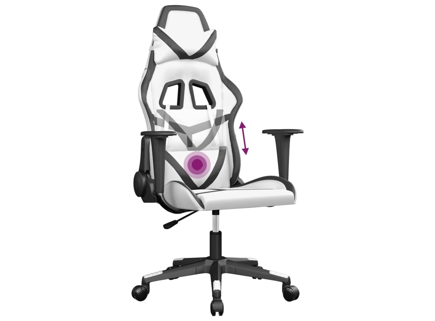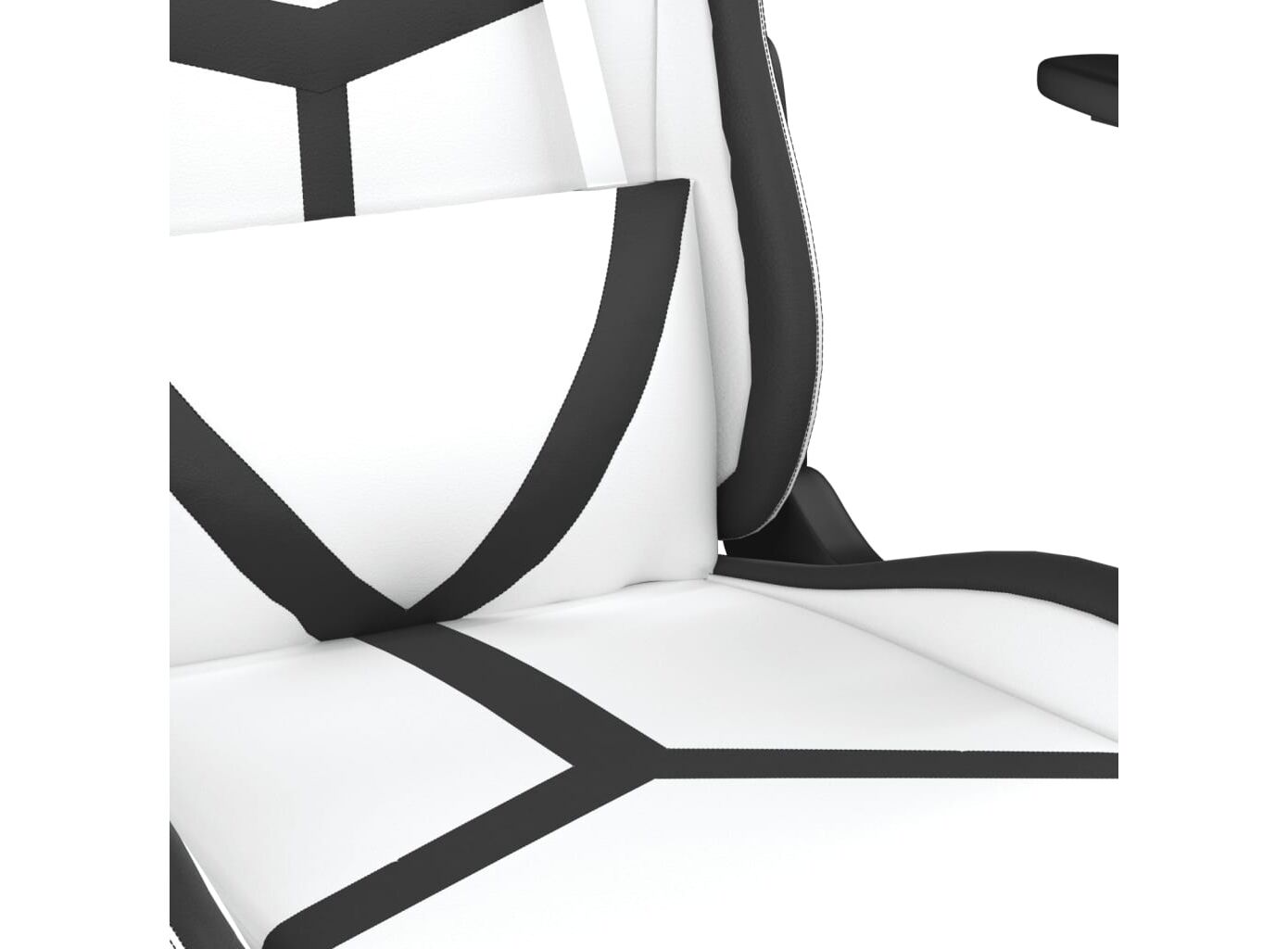 Scaun de gaming de masaj, alb și negru, piele ecologică