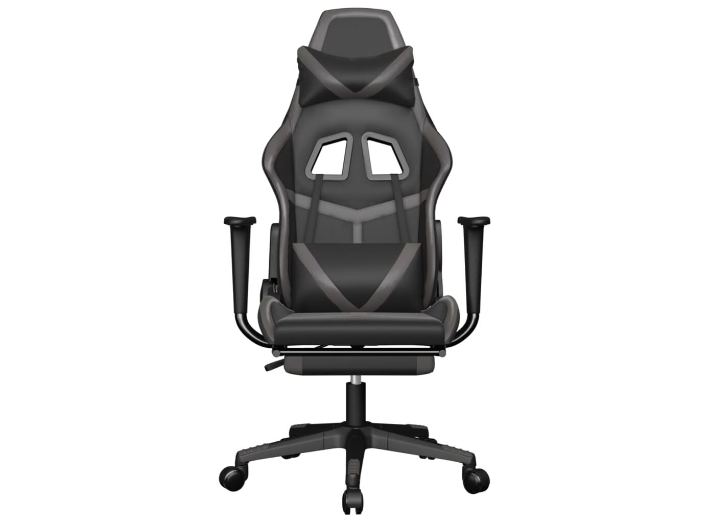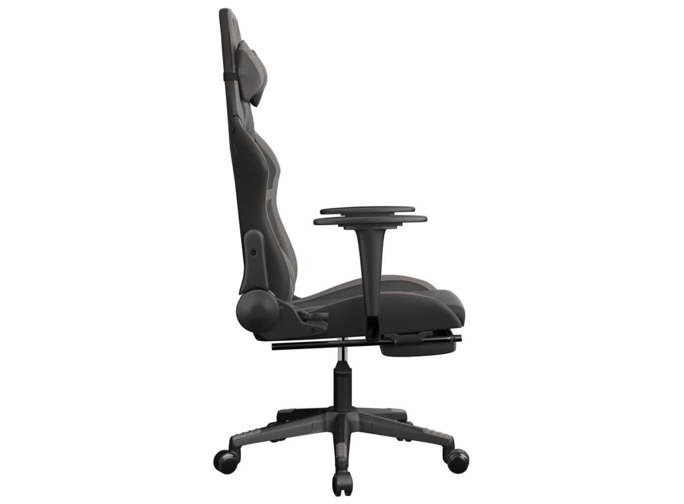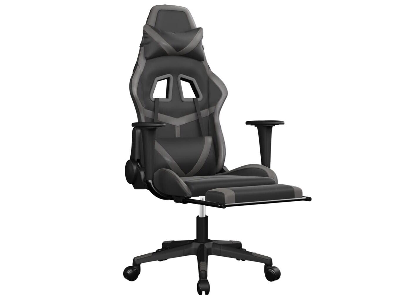 Scaun de gaming cu suport picioare, negru/gri, piele ecologică
