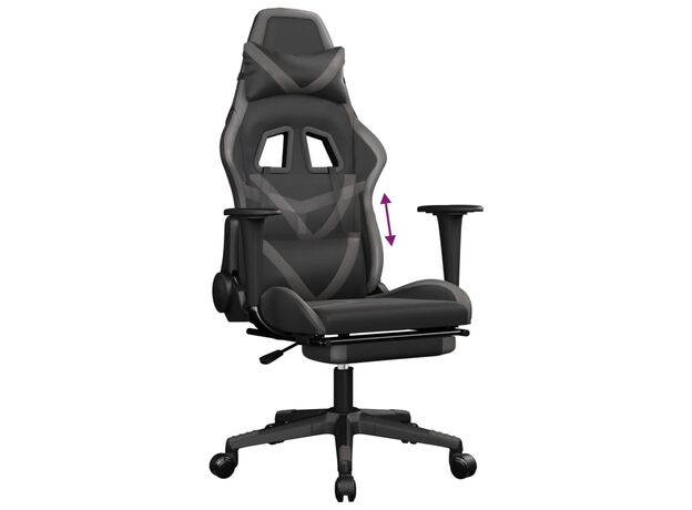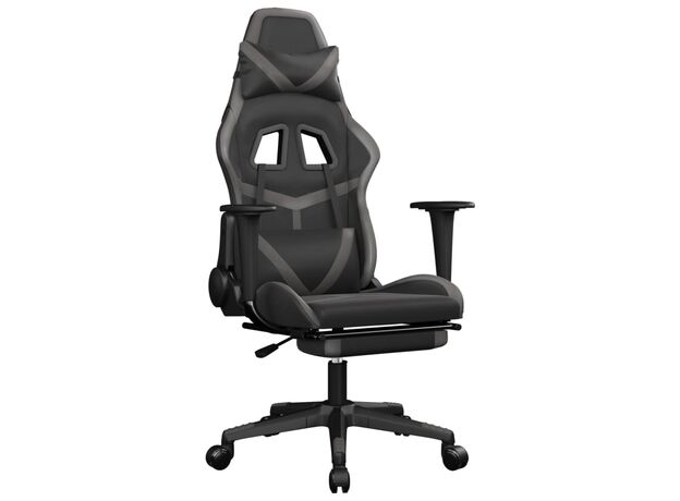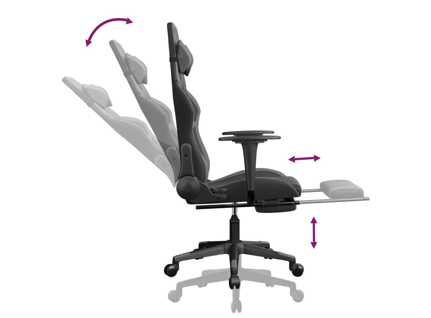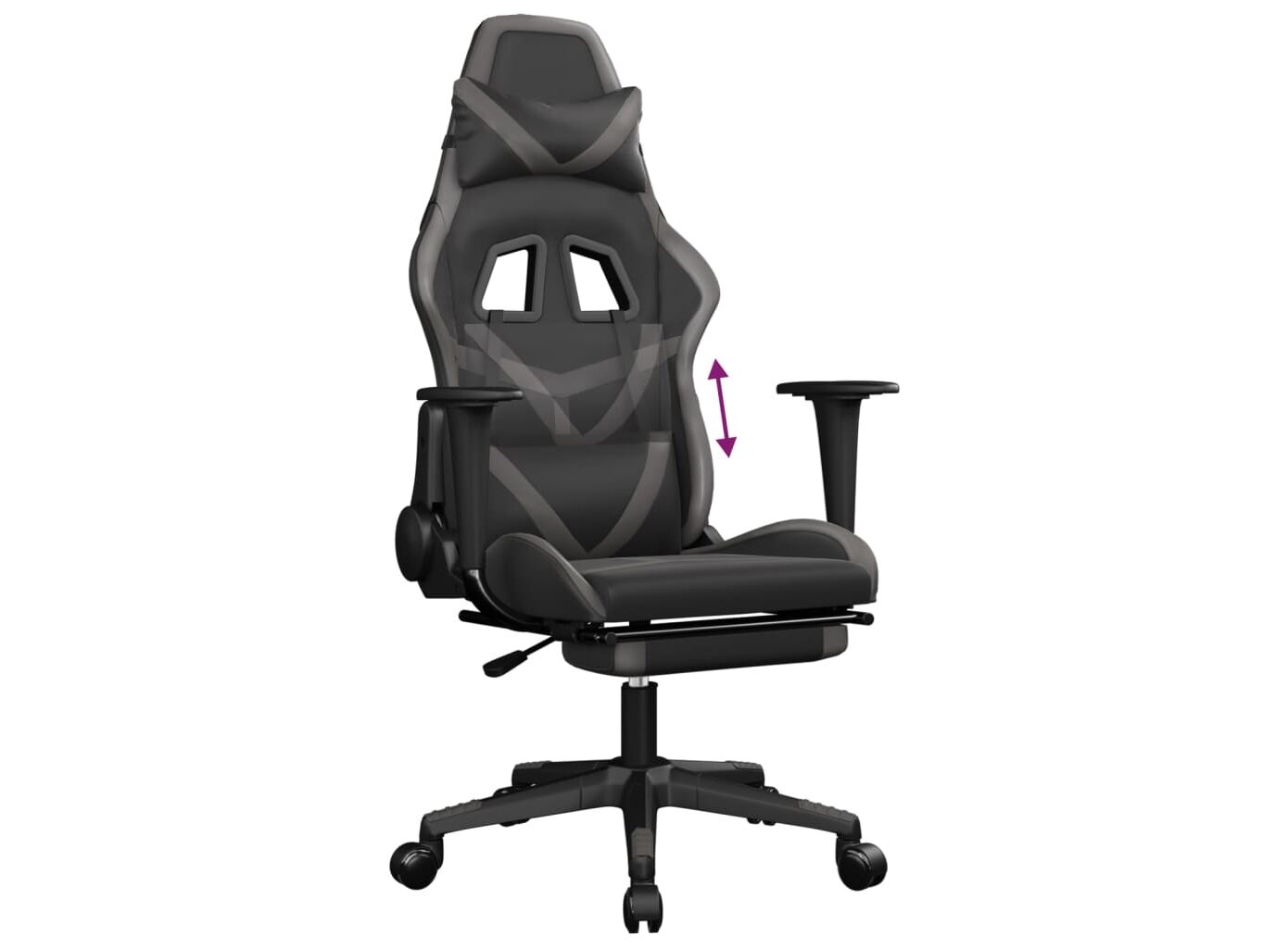 Scaun de gaming cu suport picioare, negru/gri, piele ecologică