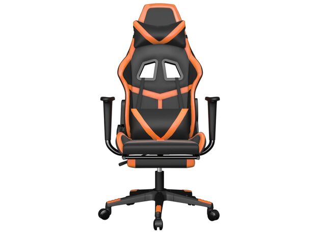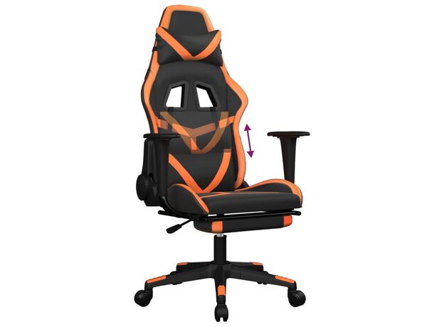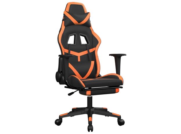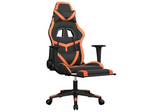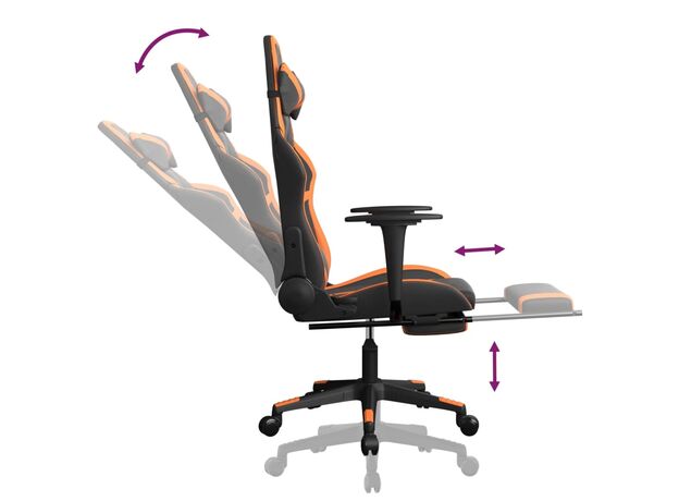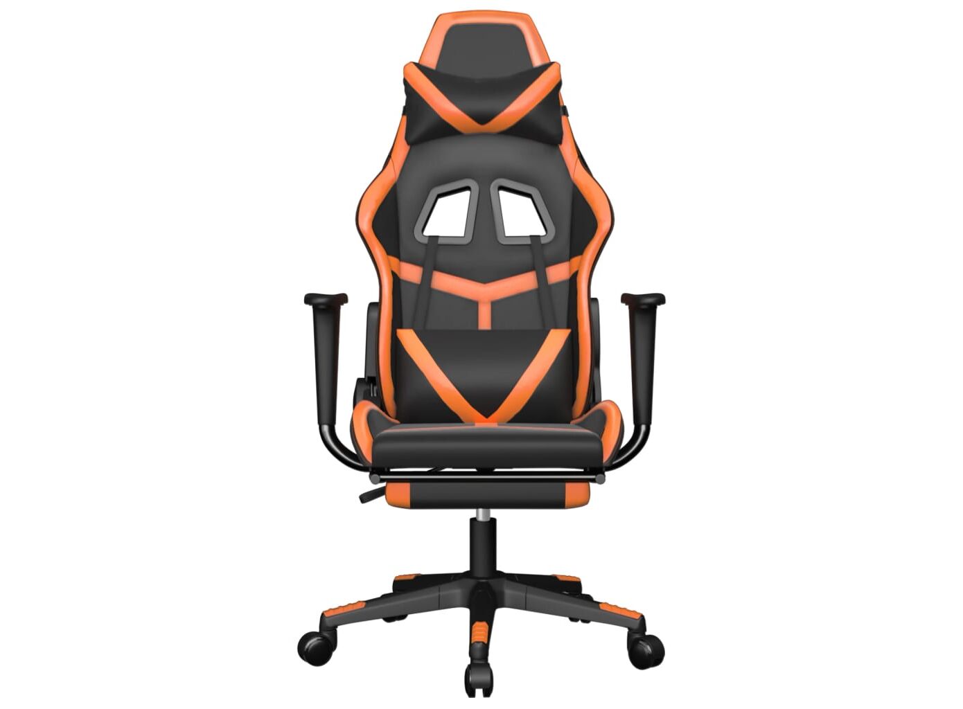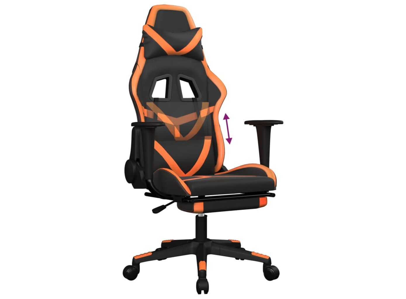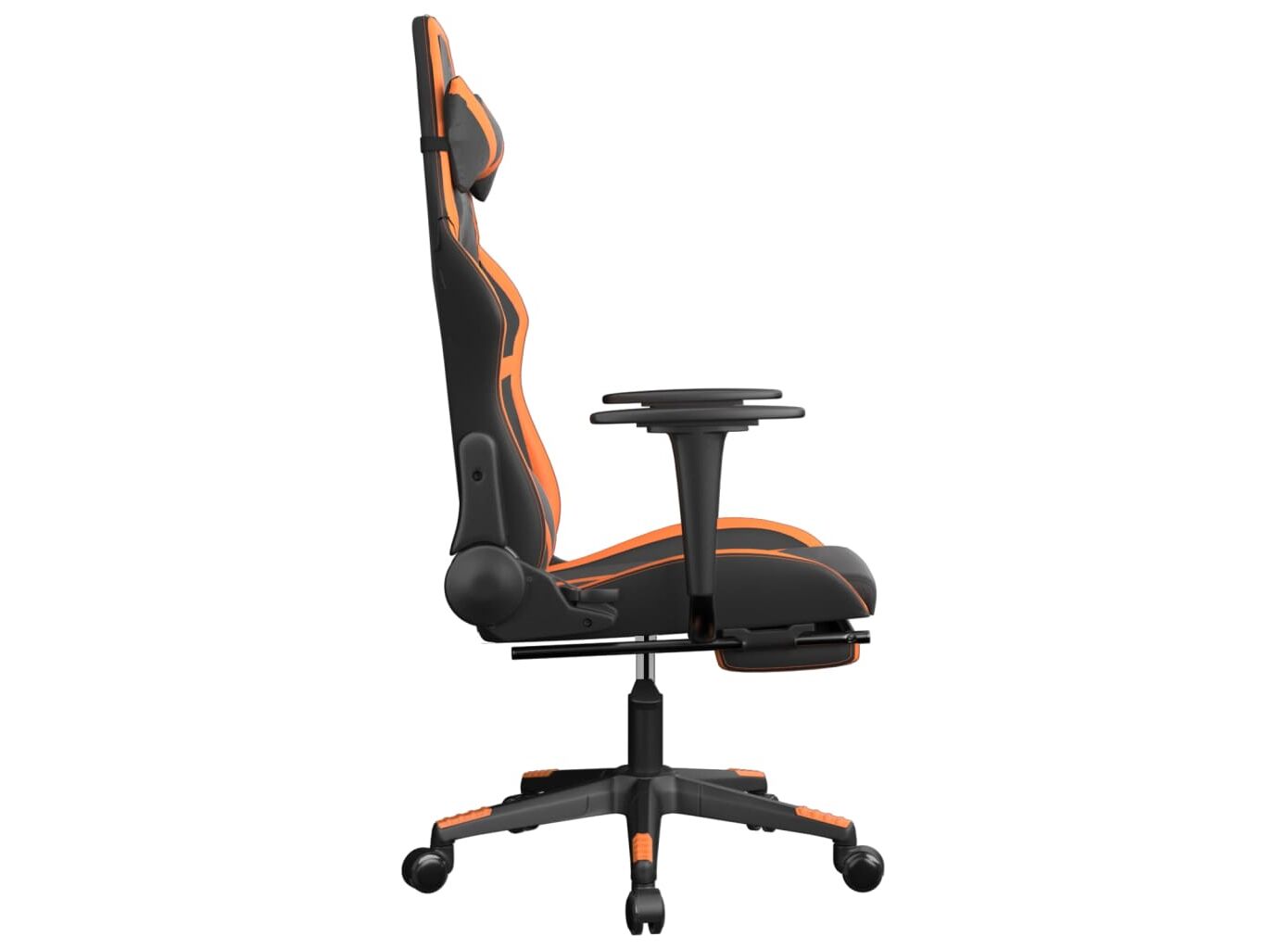 Scaun de gaming cu suport picioare, negru/oranj, piele eco
