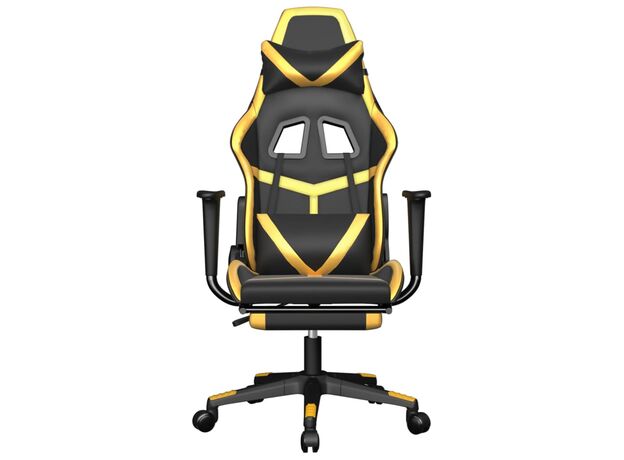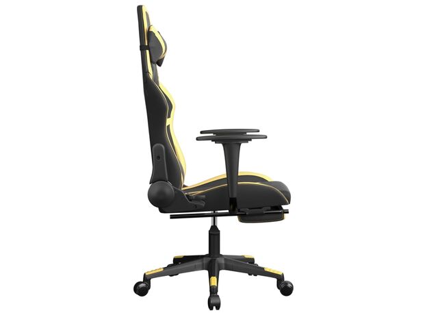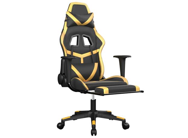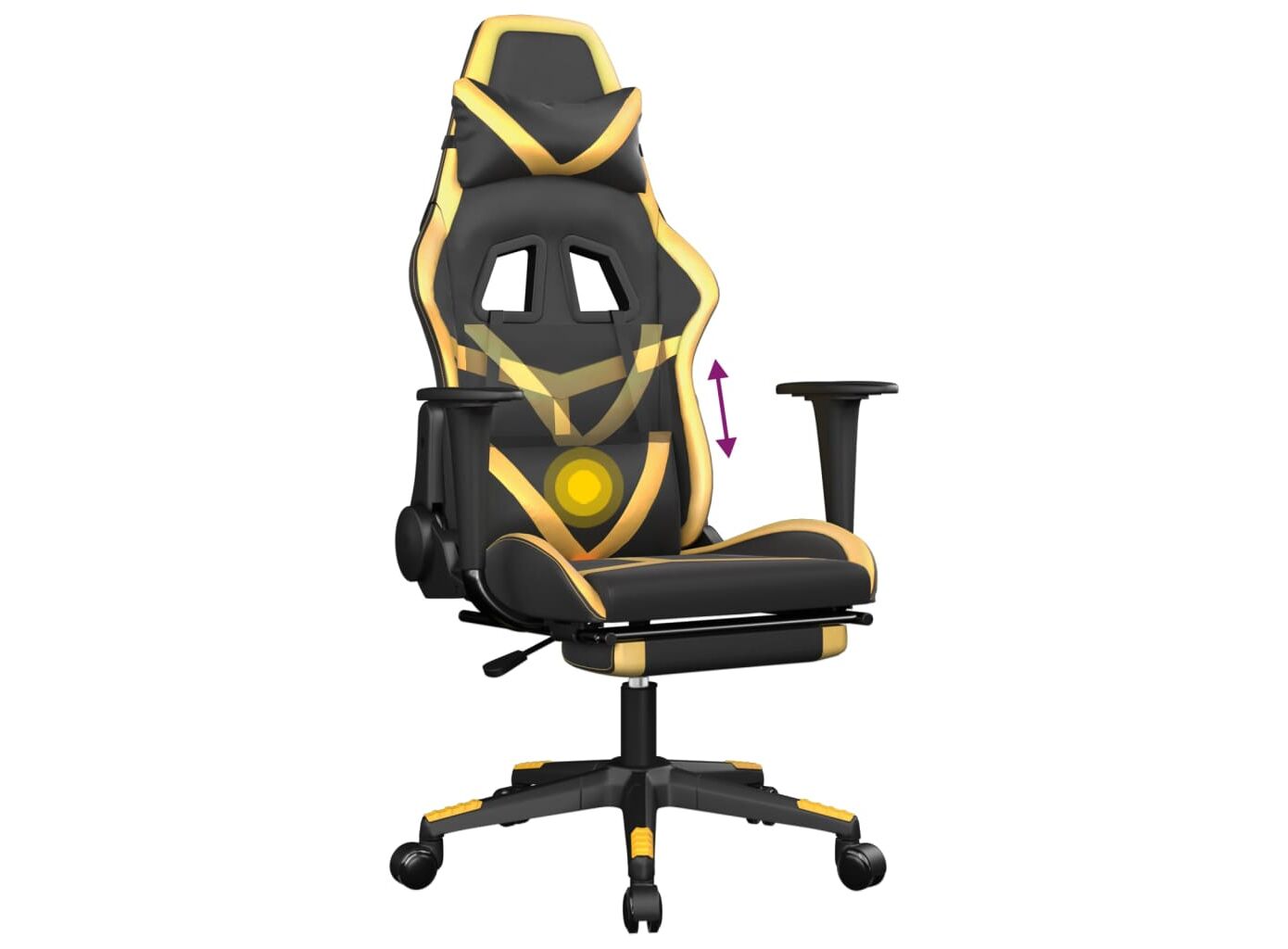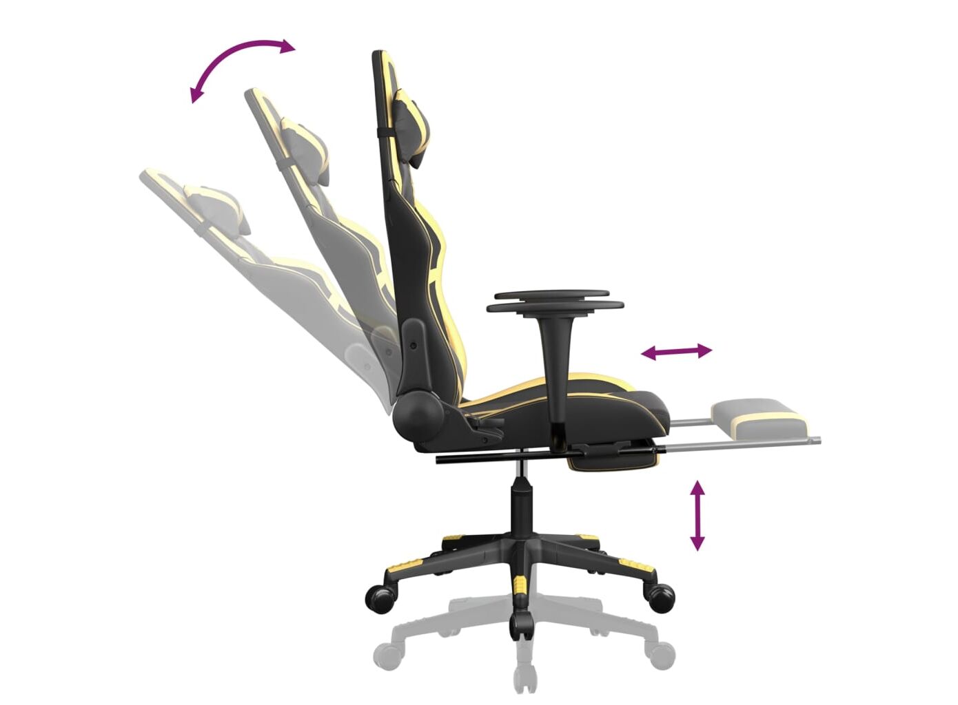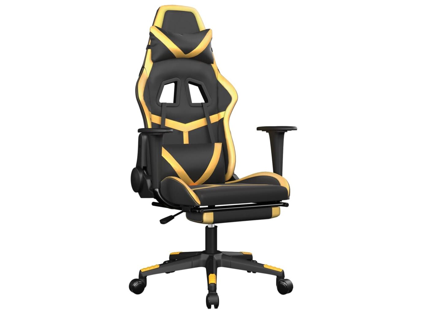 Scaun de gaming cu suport picioare negru/auriu, piele ecologică