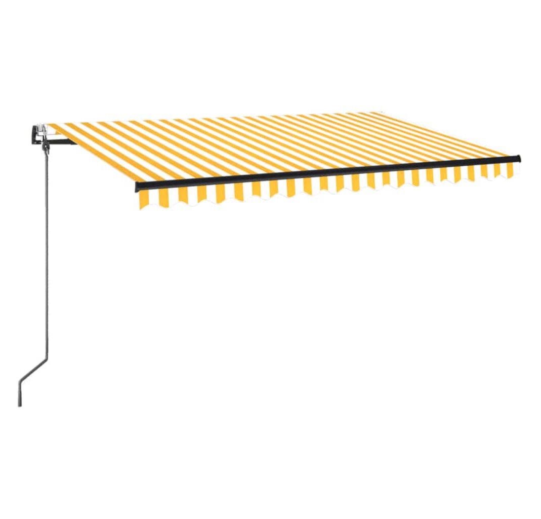 Această copertină retractabilă de exterior este construită cu un cadru din aluminiu vopsit electrostatic, rezistent la rugină, ceea ce o face ușoară, dar robustă. Țesătura copertinei este realizată din poliester de înaltă densitate cu acoperire PU, rezistentă la UV și la apă. În plus, unghiul și înălțimea pot fi ajustate conform preferințelor dvs. Puteți deschide și retrage cu ușurință copertina retractabilă automată cu telecomanda inclusă. În plus, manivela lungă de mână, poate controla ușor copertina. De asemenea, este echipată cu un senzor de vânt care vă poate închide copertina automat în zilele cu vânt. Mai mult, LED-ul furnizează lumină în mod economic pe timpul nopții.