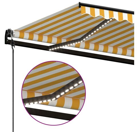 Copertină automată cu senzor vânt&LED, galben/alb, 500x300 cm