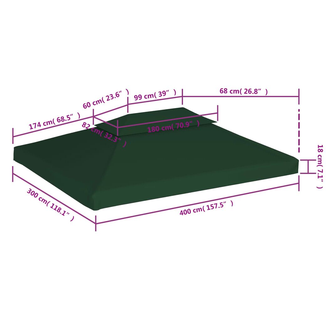 Vă rugăm să rețineți că aceasta este doar copertina de acoperiș. Pachetul de livrare nu include și un cadru pentru foișor. Aceasta este o copertină de rezervă de calitate superioară pentru persoanele care deja dețin un cadru. Vă oferim, de asemenea, 16 elemente de fixare cu bandă autoadezivă cu arici pentru o instalare și fixare simplă de scheletul foișorului.