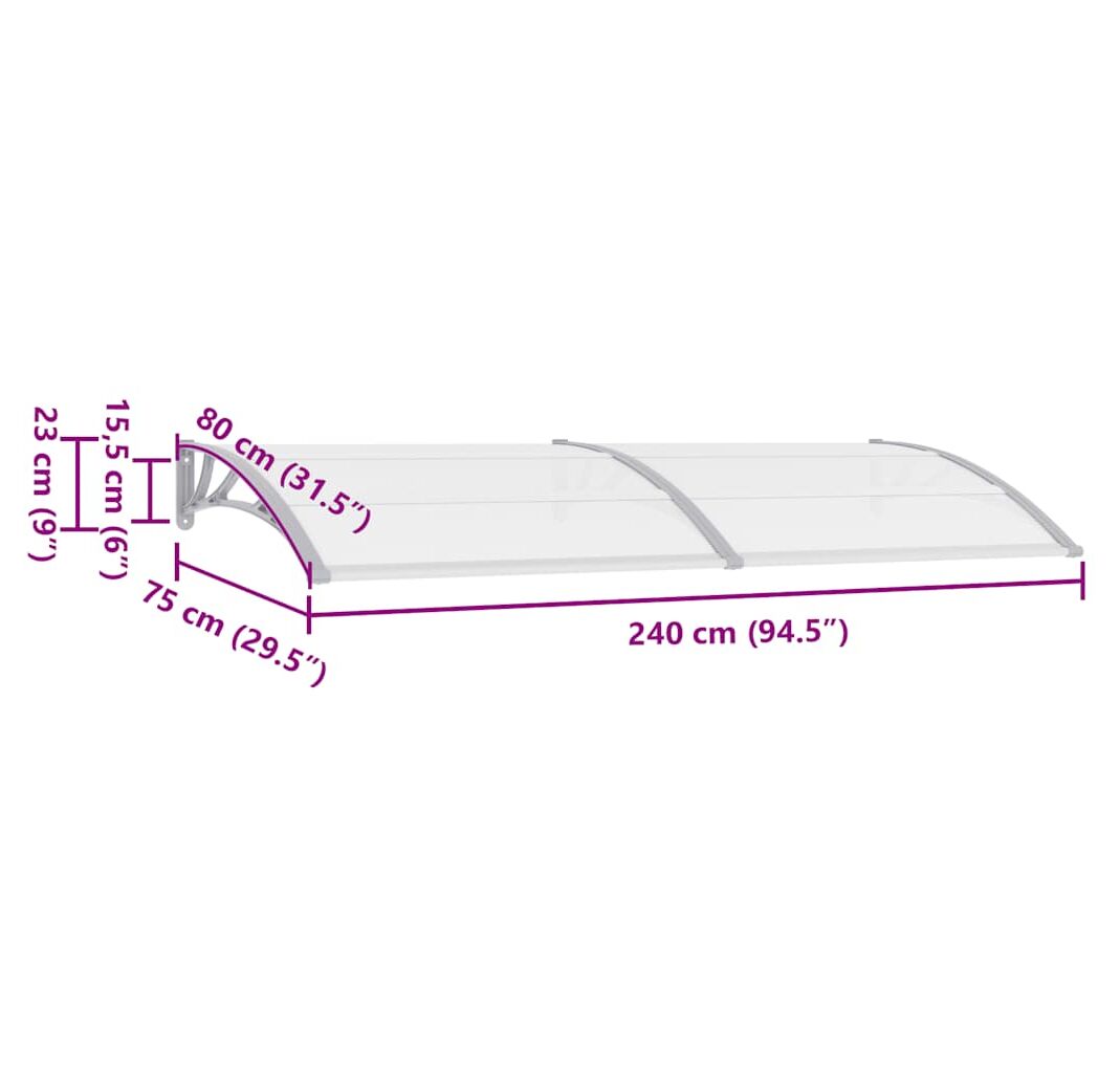 Copertină de ușă, gri și transparent, 240 x 75 cm, PC