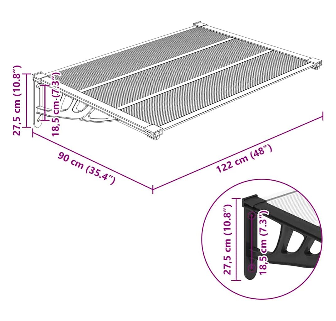 - Material durabil: Foile goale din policarbonat ale copertinei pentru ușa frontală, sunt incredibil de durabile, rezistente la intemperii și la coroziune.