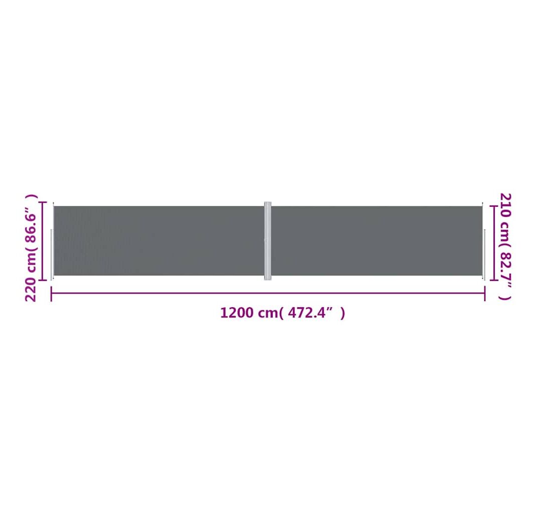 Copertină laterală retractabilă, antracit, 220x1200 cm