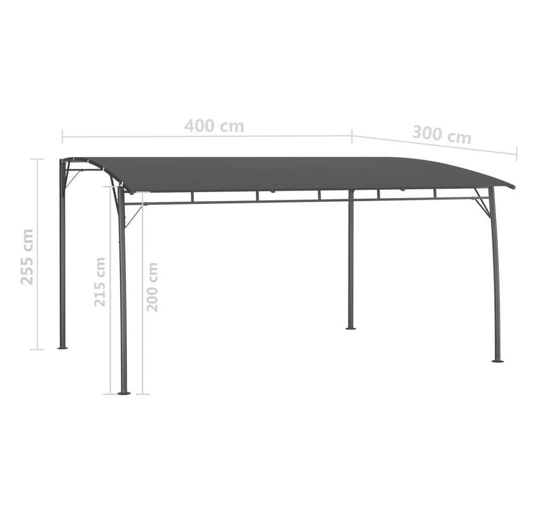 Prezintă o construcție metalică robustă, iar oțelul vopsit electrostatic menține cadrul durabil și stabil. Acoperișul din material textil oferă protecție împotriva soarelui arzător, ajutându-vă să vă bucurați de un confort sporit în timpul activităților dvs. în aer liber. Acest cort de adăpost elegant, dar practic, poate fi montat cu ușurință.
