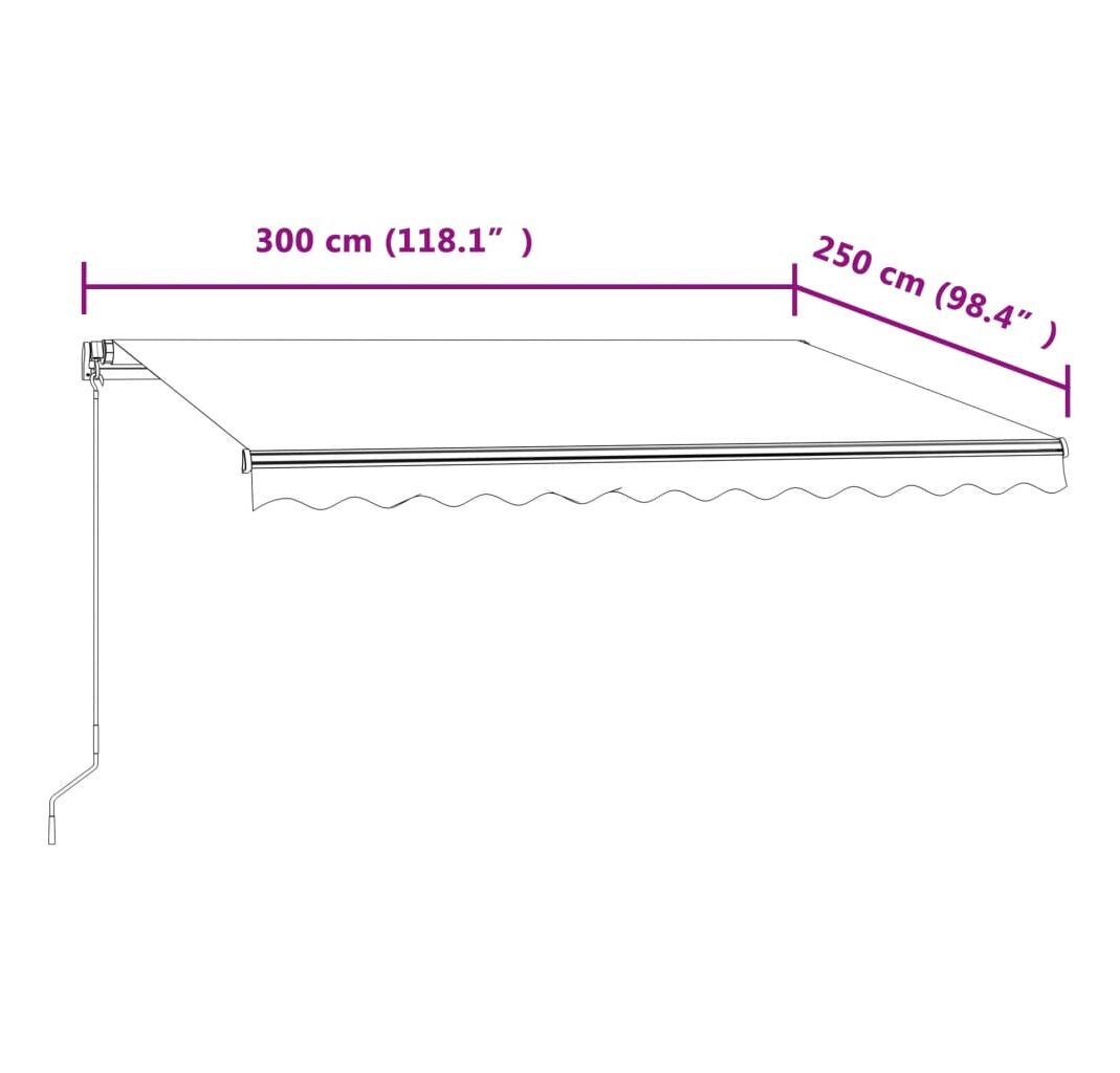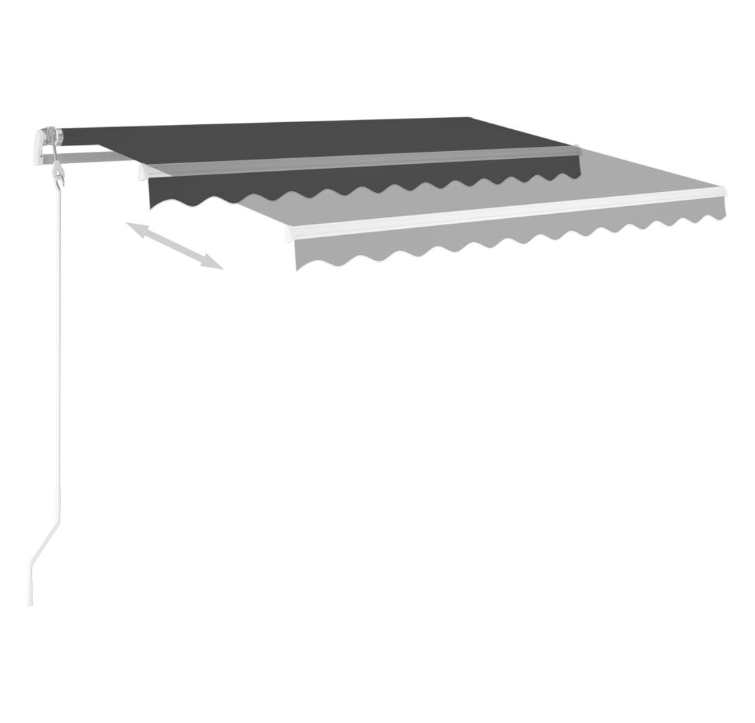 Această copertină de exterior este construită cu un cadru din aluminiu vopsit electrostatic, rezistent la rugină, fiind astfel ușoară, dar robustă. Țesătura copertinei de terasă este realizată din poliester de înaltă densitate cu acoperire PU, fiind rezistentă la UV și la apă. În plus, unghiul și înălțimea pot fi ajustate conform preferințelor dvs. Puteți deschide și retrage cu ușurință copertina retractabilă automată, cu telecomanda inclusă. De asemenea, cu ajutorul manivelei lungi puteți controla ușor copertina.