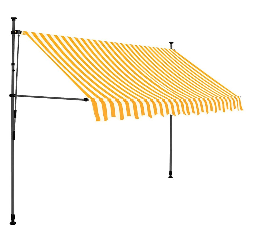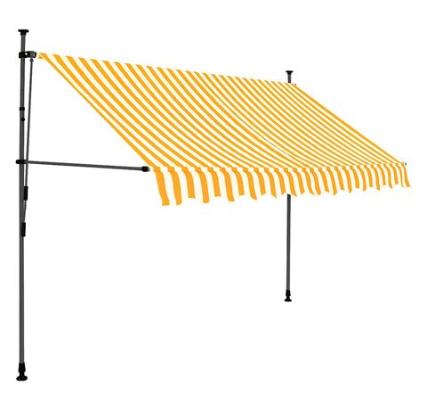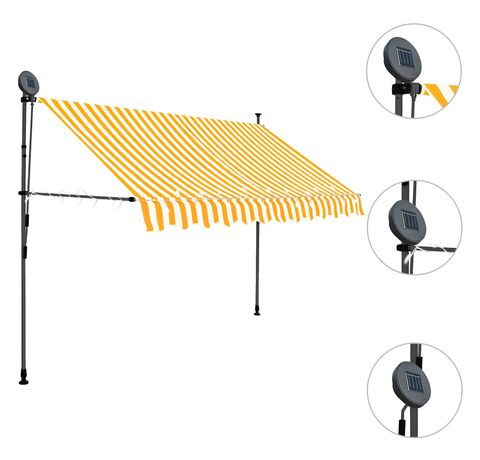 Această copertină rezistentă la apă, murdărie, raze UV și intemperii este fabricată din poliester de calitate, cu un înveliș din PU. Cadrul robust din oțel asigură rezistență și durabilitate copertinei. Copertina din poliester este ușor de curățat și poate fi îndepărtată și spălată. Datorită manivelei, copertina este retractabilă. Înălțimea și unghiul de înclinare a copertinei pot fi de asemenea ajustate. În plus, luminile LED cu baterie solară asigură iluminatul economic peste noapte. Copertina este ușor de asamblat.