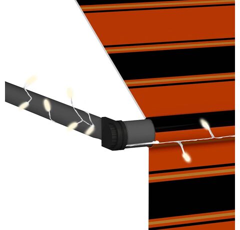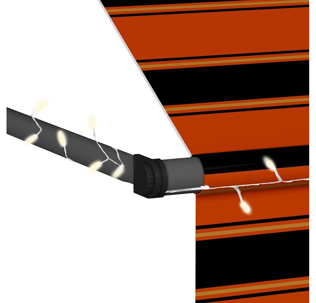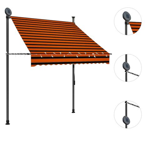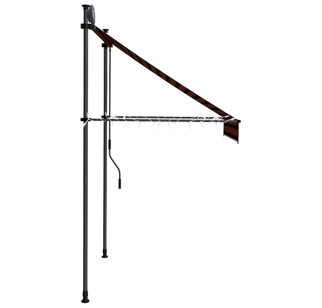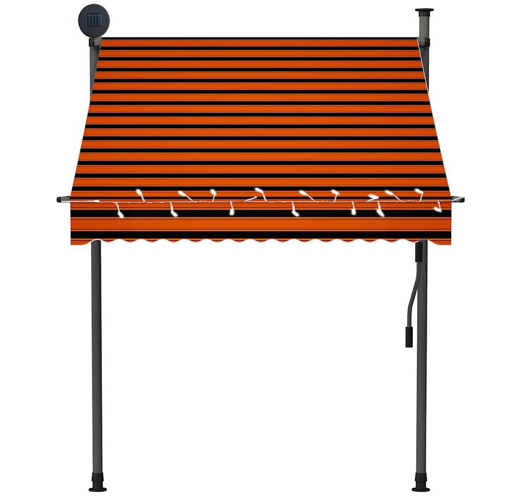 Această copertină rezistentă la apă, murdărie, raze UV și intemperii este fabricată din poliester de calitate, cu un înveliș din PU. Cadrul robust din oțel asigură rezistență și durabilitate copertinei. Copertina din poliester este ușor de curățat și poate fi îndepărtată și spălată. Datorită manivelei, copertina este retractabilă. Înălțimea și unghiul de înclinare a copertinei pot fi de asemenea ajustate. În plus, luminile LED cu baterie solară asigură iluminatul economic peste noapte. Copertina este ușor de asamblat.