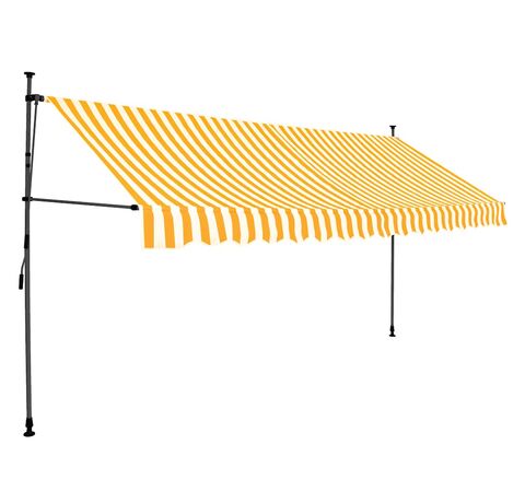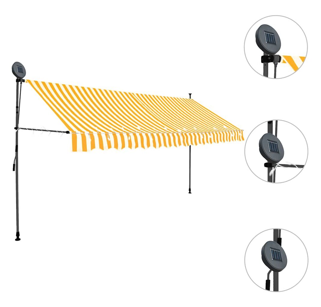 Această copertină rezistentă la apă, murdărie, raze UV și intemperii este fabricată din poliester de calitate, cu un înveliș din PU. Cadrul robust din oțel asigură rezistență și durabilitate copertinei. Copertina din poliester este ușor de curățat și poate fi îndepărtată și spălată. Datorită manivelei, copertina este retractabilă. Înălțimea și unghiul de înclinare a copertinei pot fi de asemenea ajustate. În plus, luminile LED cu baterie solară asigură iluminatul economic peste noapte. Copertina este ușor de asamblat.