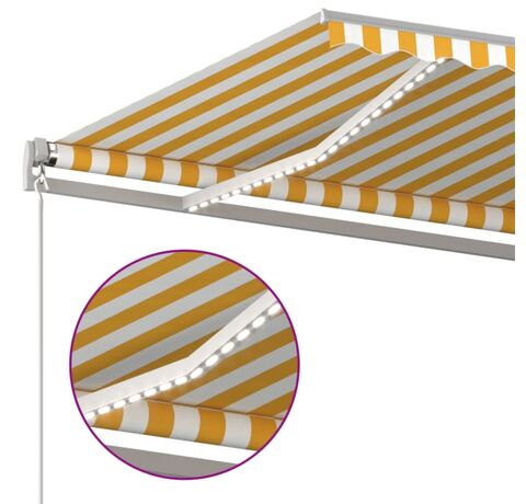 Copertină retractabilă manual cu LED, galben și alb, 600x350 cm