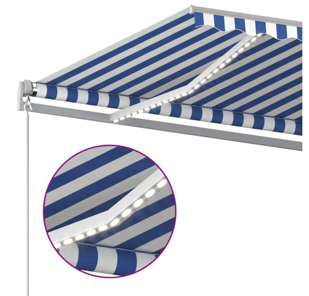Copertina de exterior este construită cu un cadru din aluminiu vopsit electrostatic, rezistent la rugină, fiind ușoară, dar robustă. Materialul copertinei este realizat din poliester de înaltă densitate cu înveliș din PU, rezistent la UV și la apă. În plus, unghiul și înălțimea pot fi ajustate pentru a răspunde nevoilor dvs. specifice. Puteți deschide și închide copertina fără probleme, cu ajutorul unei manivele lungi. Mai mult, LED-urile cu alimentare cu energie solară, furnizează lumină în mod economic pe timpul nopții.
