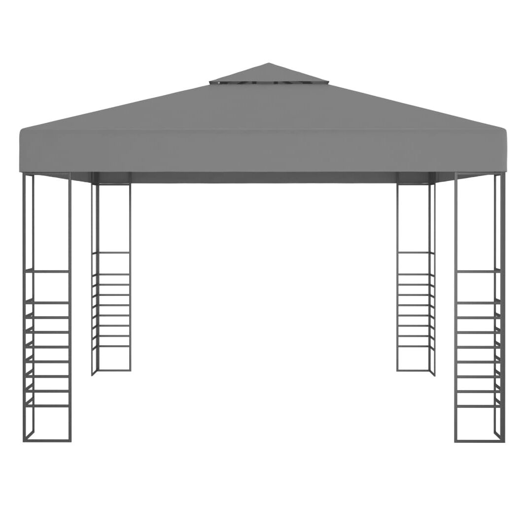 Cadrul este solid și stabil datorită construcției integrale din oțel, iar baldachinul de pe acoperiș este realizat din poliester 100%, cu un strat de poliamidă necesar pentru a vă proteja de razele UV dăunătoare și de ploaie. Designul său elegant cu dublă ventilație permite un flux de aer mai bun, aducând un plus de confort. Instalarea este simplă.