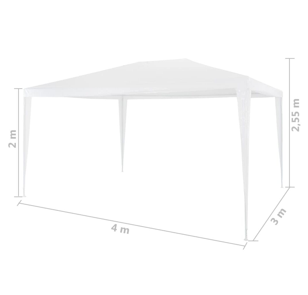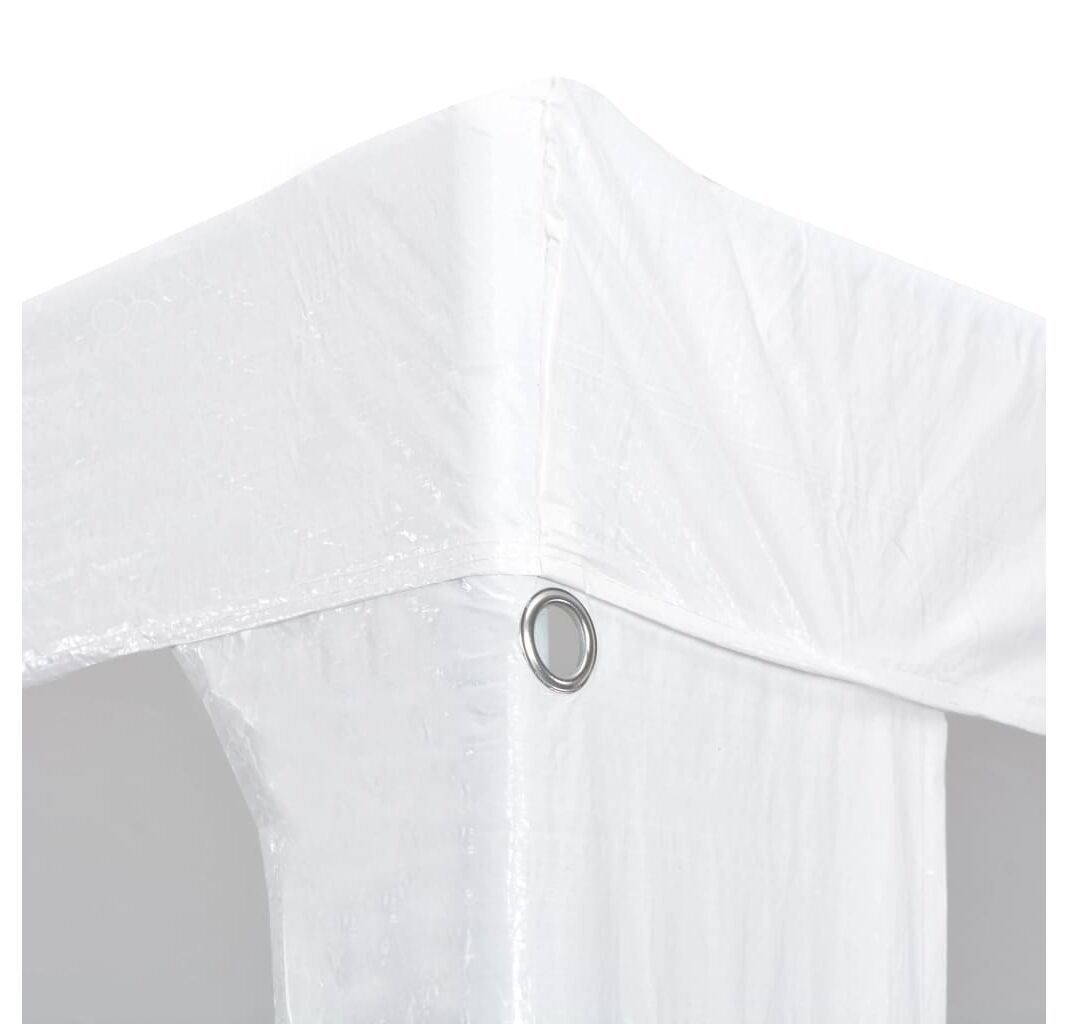 Cortul de petrecere este fabricat din polietilenă rezistentă la apă și raze UV, fiind practic pentru folosirea în aer liber. Cadrul este realizat din oțel rezistent la rugină, ceea ce face ca copertina de exterior să fie stabilă și durabilă. Pavilionul de grădină este ușor de asamblat.