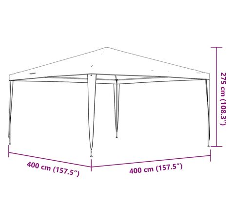Cortul de petrecere este fabricat din polietilenă rezistentă la apă și raze UV, fiind practic pentru folosirea în aer liber. Cadrul este realizat din fier rezistent, copertina de exterior fiind stabilă și durabilă. Pavilionul de grădină este ușor de asamblat.