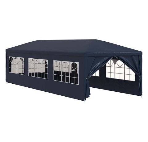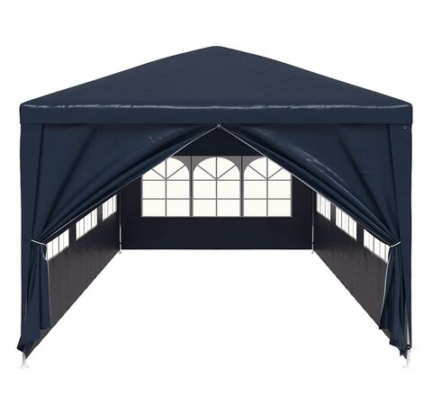 Pavilionul de grădină este realizat din polietilenă rezistentă la apă și raze UV, fiind foarte practic pentru utilizarea în exterior. Cadrul este fabricat din oțel rezistent la rugină, asigurând stabilitate și durabilitate copertinei de exterior. Cortul de petreceri este prevăzut cu panouri laterale, fiecare cu ferestre decorative, și cu o ușă cu fermoar, pentru acces ușor. Pavilionul de grădină este ușor de asamblat.