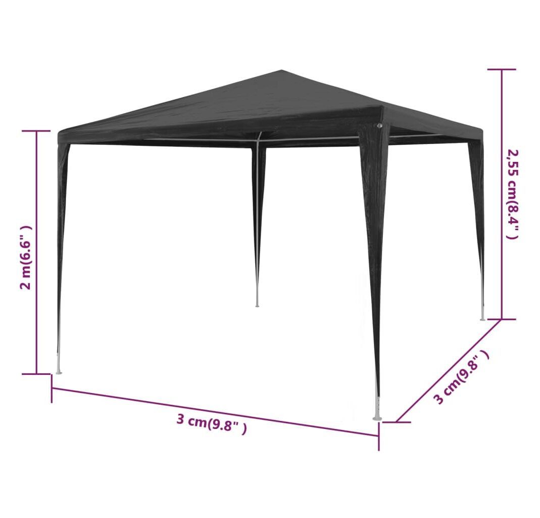 Cortul de petrecere este fabricat din polietilenă rezistentă la apă și raze UV, fiind practic pentru folosirea în aer liber. Cadrul este realizat din oțel rezistent la rugină, ceea ce face ca copertina de exterior să fie stabilă și durabilă. Pavilionul de grădină este ușor de asamblat.