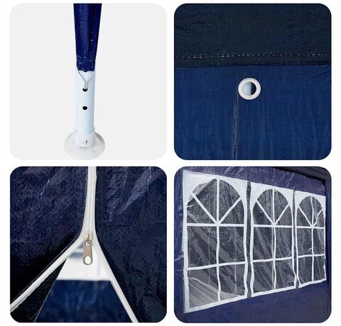 Cortul ăsta de petrecere e făcut pentru evenimente în aer liber, oferind un spațiu generos pentru până la 10 persoane. Cu finisajul său elegant în albastru și caracteristicile moderne, transformă orice grădină, terasă sau zonă în aer liber într-un loc minunat pentru socializare, mai ales pentru bufete și sărbători de vară.