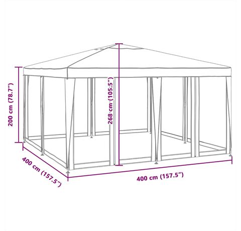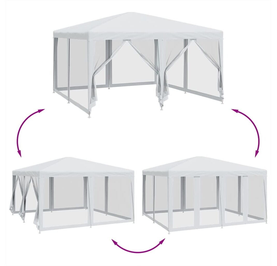 Cort de petrecere cu 4 pereți din plasă, alb, 4x4 m, HDPE