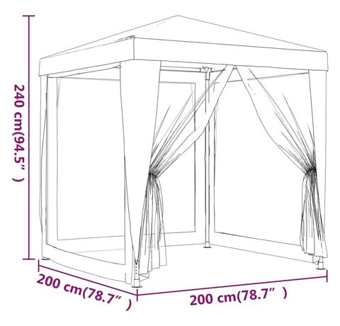 Acest cort de petrecere, cu un cadru din oțel vopsit electrostatic, un acoperiș rezistent la apă și patru pereți laterali din plasă, este un adăpost ideal împotriva soarelui.
