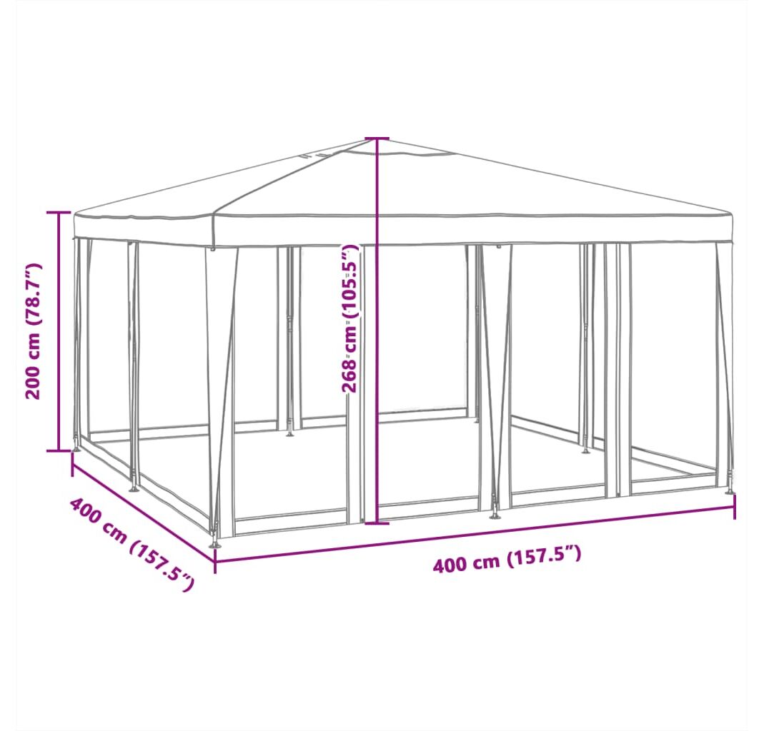 - Dimensiuni: 400 x 400 x 268 cm (L x l x î)