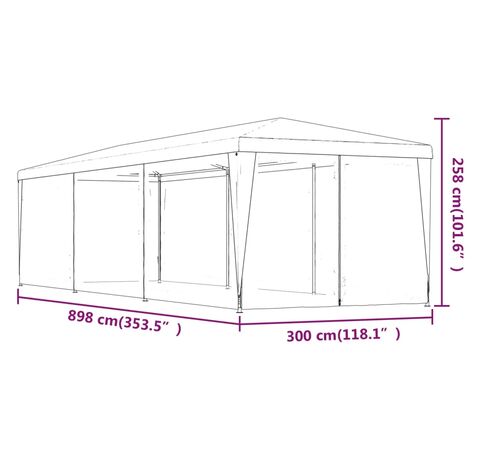 Cort de petrecere cu 8 pereți din plasă, verde, 3x9 m, HDPE