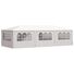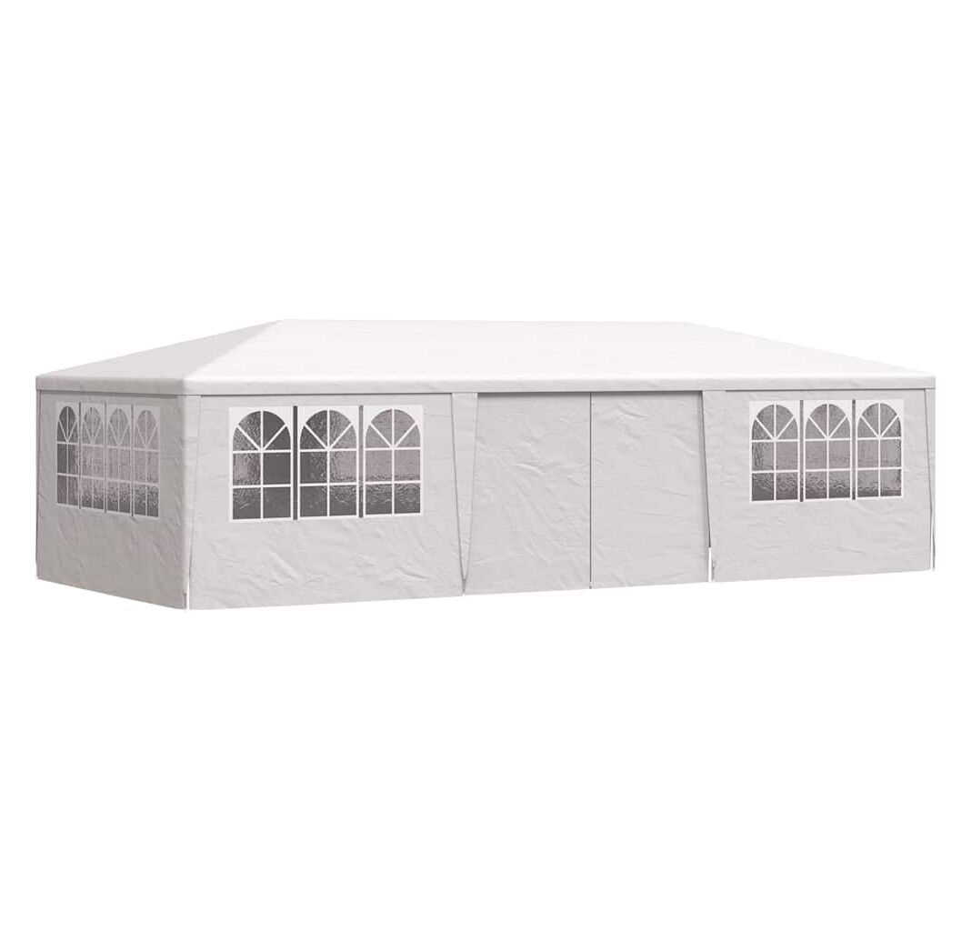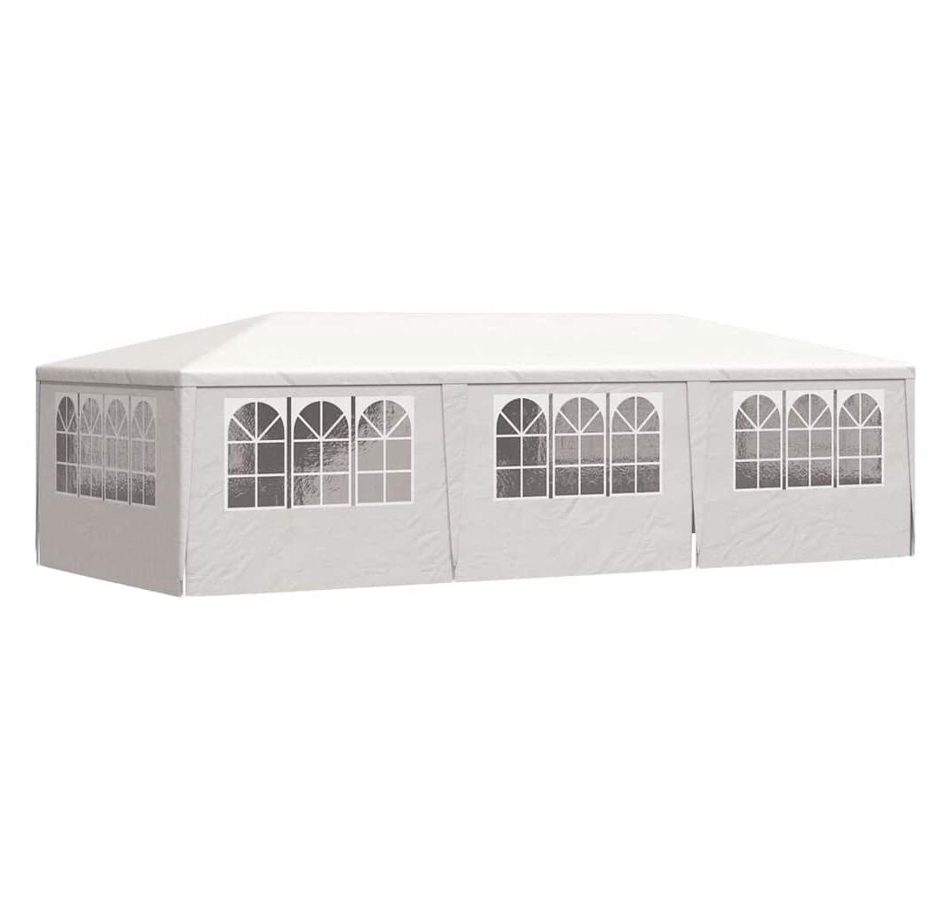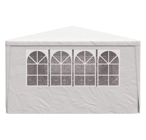 Pavilionul de grădină este realizat din polietilenă rezistentă la apă și raze UV, fiind foarte practic pentru utilizarea în exterior. Cadrul este fabricat din oțel rezistent la rugină, asigurând stabilitate și durabilitate copertinei de exterior. Cortul de petreceri este prevăzut cu panouri laterale, fiecare cu ferestre decorative, și cu o ușă cu fermoar, pentru acces ușor. Pavilionul de grădină este ușor de asamblat.