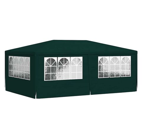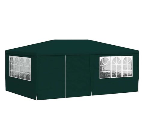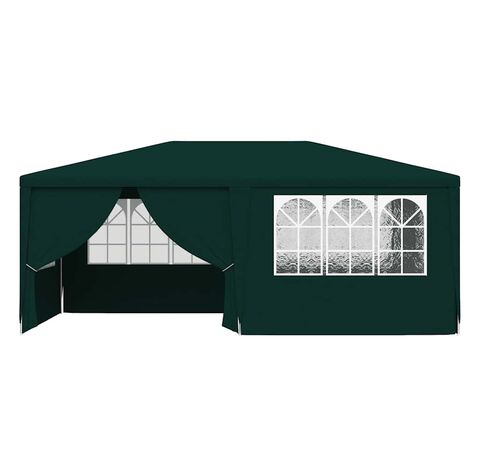 Pavilionul de grădină este realizat din polietilenă rezistentă la apă și raze UV, fiind foarte practic pentru utilizarea în exterior. Cadrul este fabricat din oțel rezistent la rugină, asigurând stabilitate și durabilitate copertinei de exterior. Cortul de petreceri este prevăzut cu panouri laterale, fiecare cu ferestre decorative, și cu o ușă cu fermoar, pentru acces ușor. Pavilionul de grădină este ușor de asamblat.