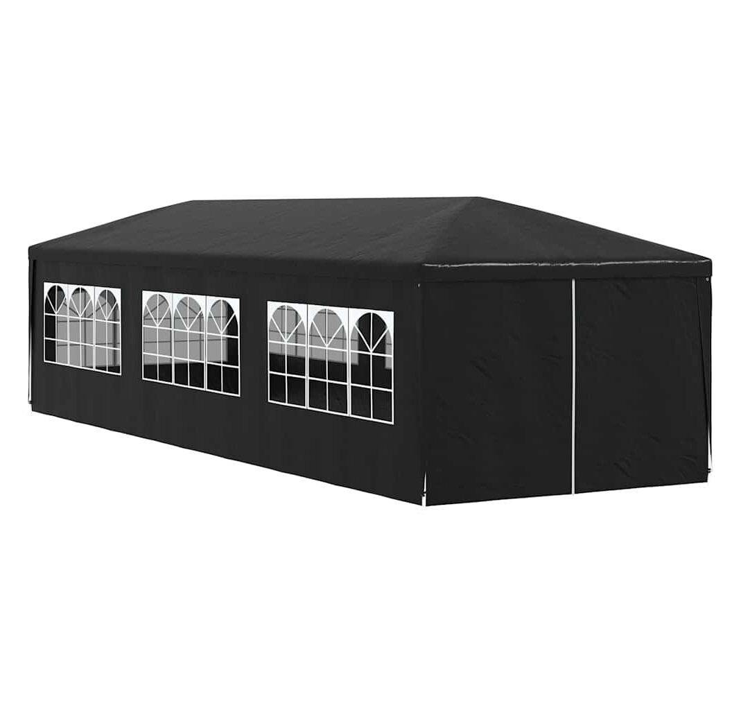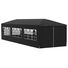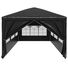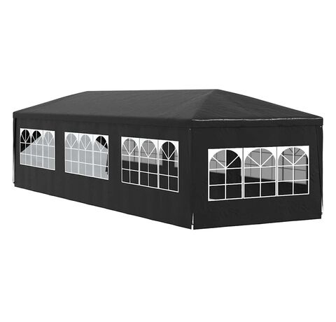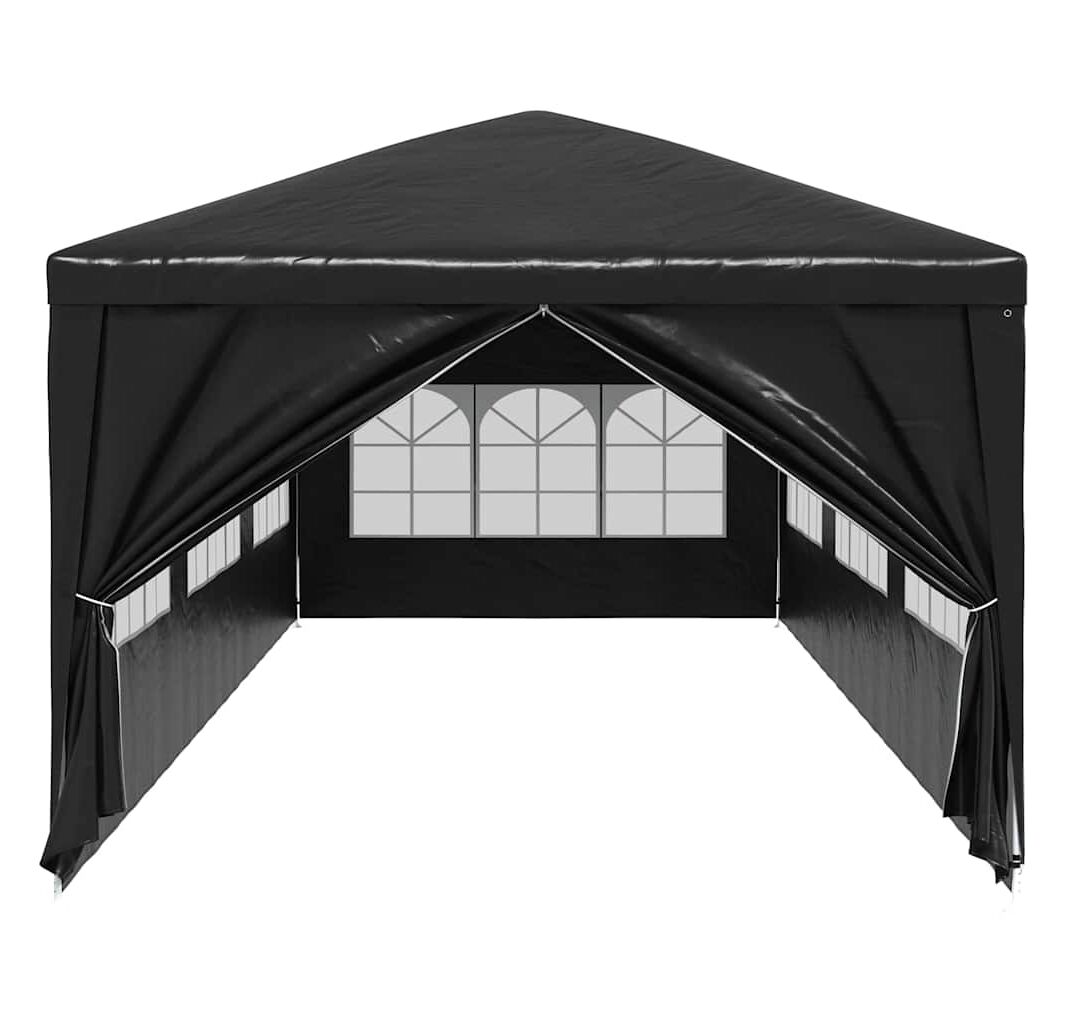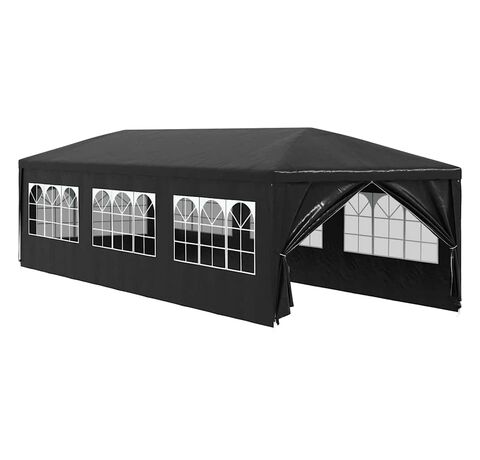 Pavilionul de grădină este realizat din polietilenă rezistentă la apă și raze UV, fiind foarte practic pentru utilizarea în exterior. Cadrul este fabricat din oțel rezistent la rugină, asigurând stabilitate și durabilitate copertinei de exterior. Cortul de petreceri este prevăzut cu panouri laterale, fiecare cu ferestre decorative, și cu o ușă cu fermoar, pentru acces ușor. Pavilionul de grădină este ușor de asamblat.